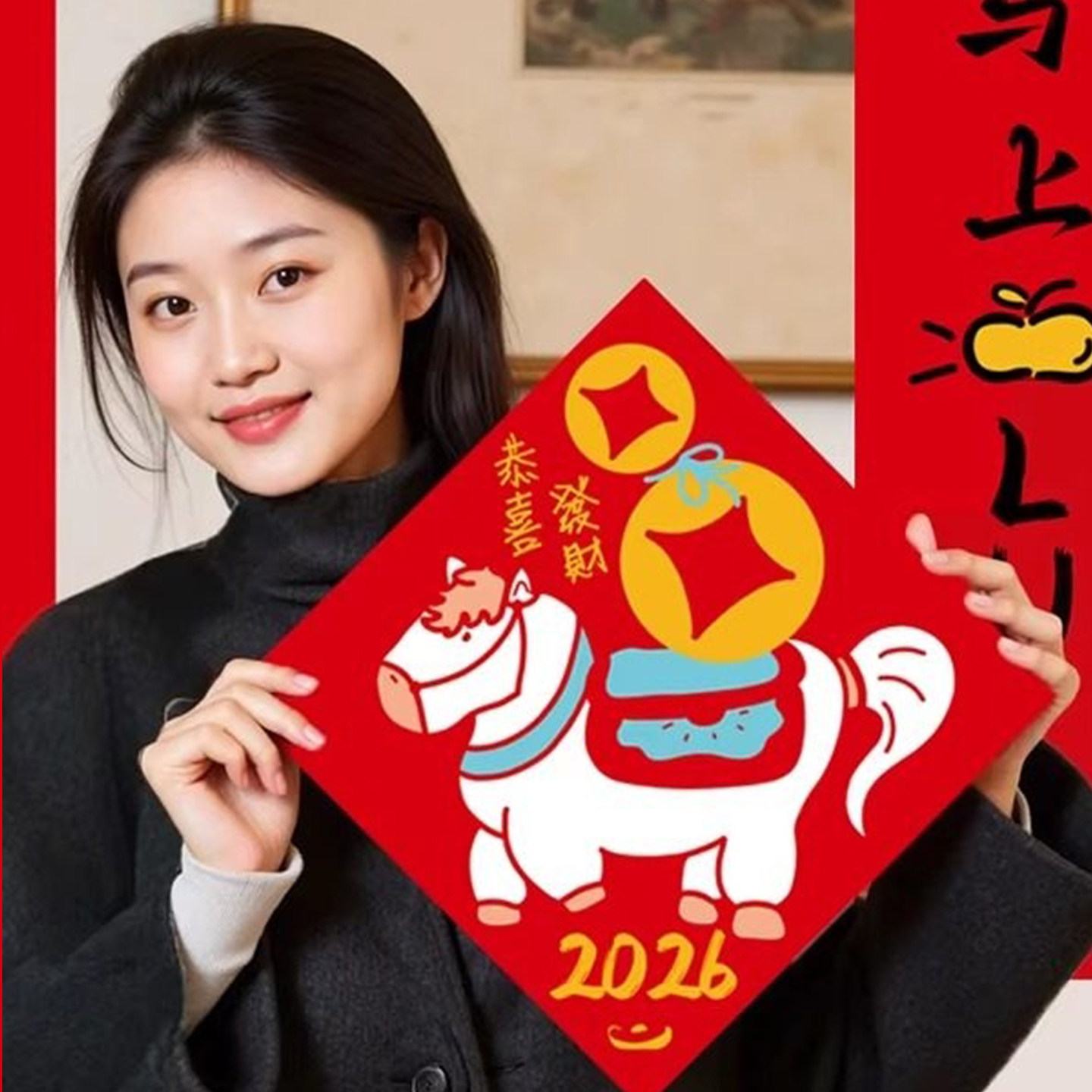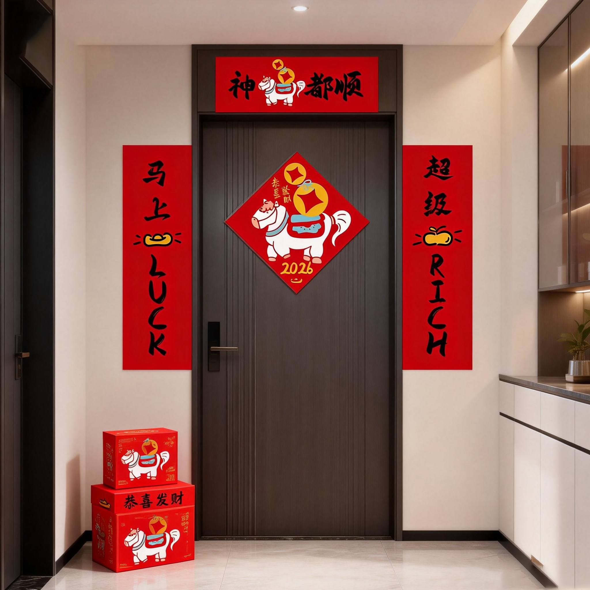 春联2026马年新款创意对联全磁吸门贴入户门布置装饰搞笑门贴门联