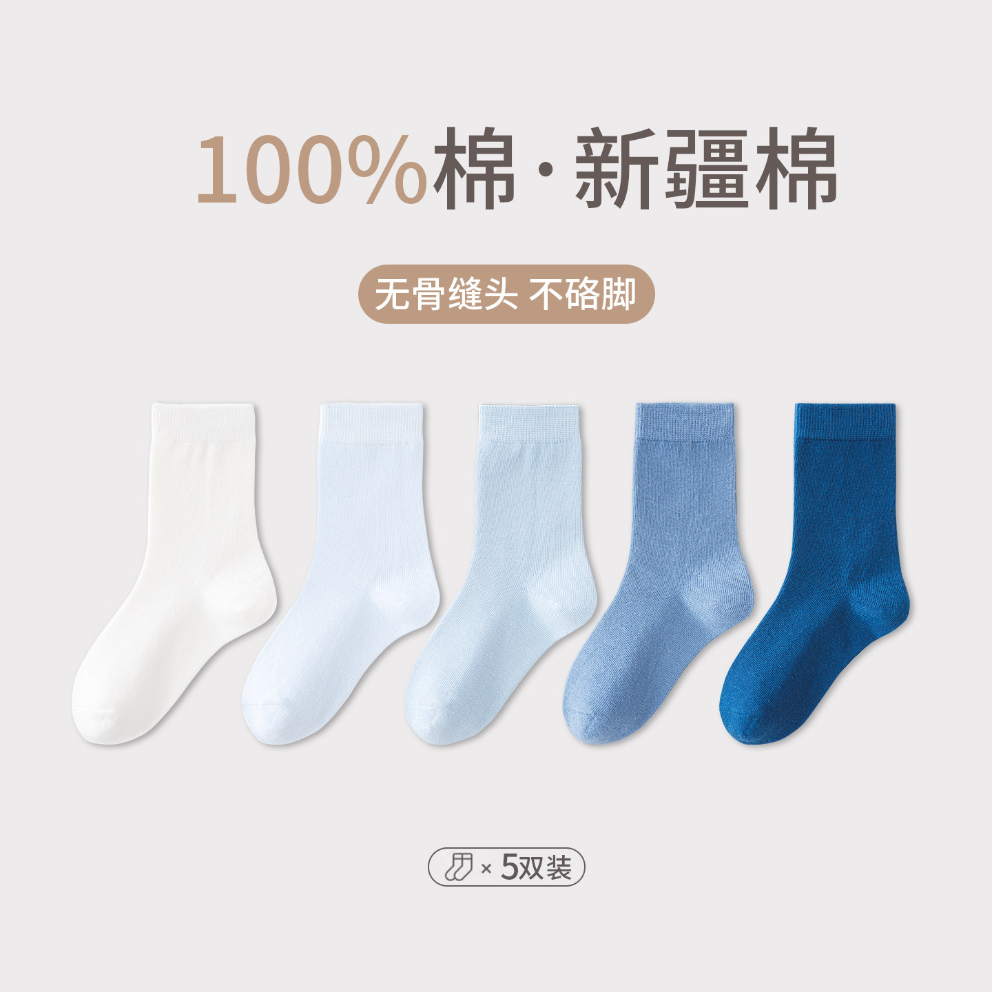 青少年袜子男童秋冬款100%纯棉抗菌防臭学生运动袜儿童全棉无骨袜