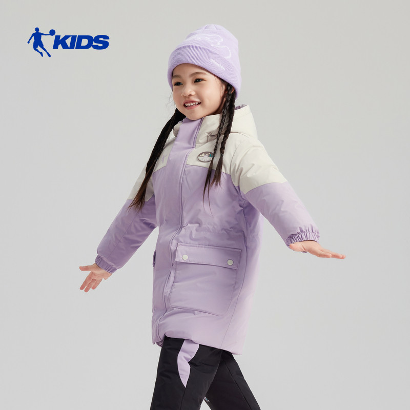 商场同款乔丹儿童羽绒服2026冬季新款女童中长款鸭绒小童保暖外套