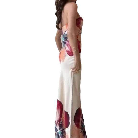 欧美时尚印花性感抹胸中长款修身连衣裙Women printed sexy dress