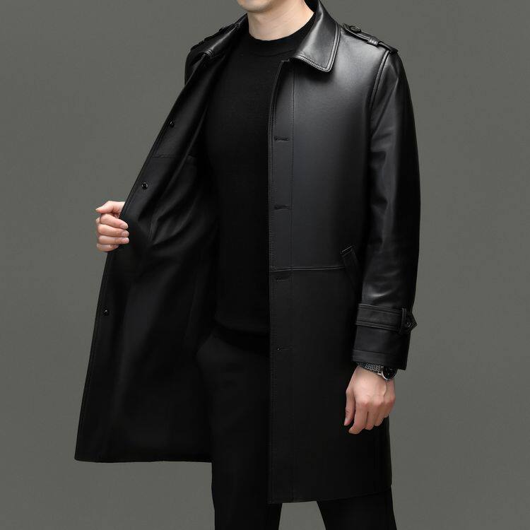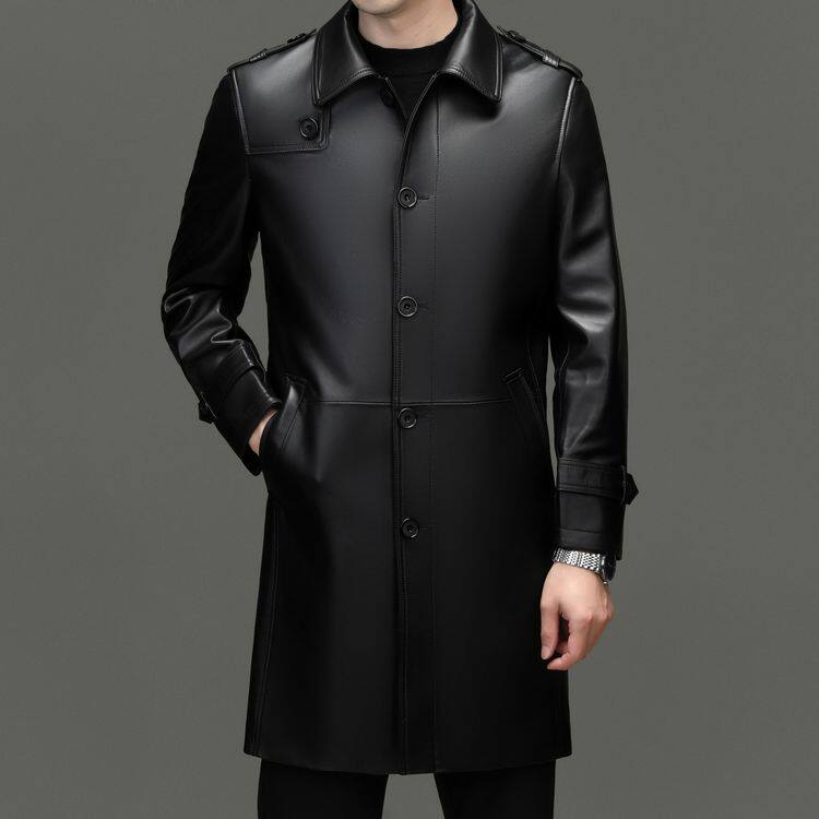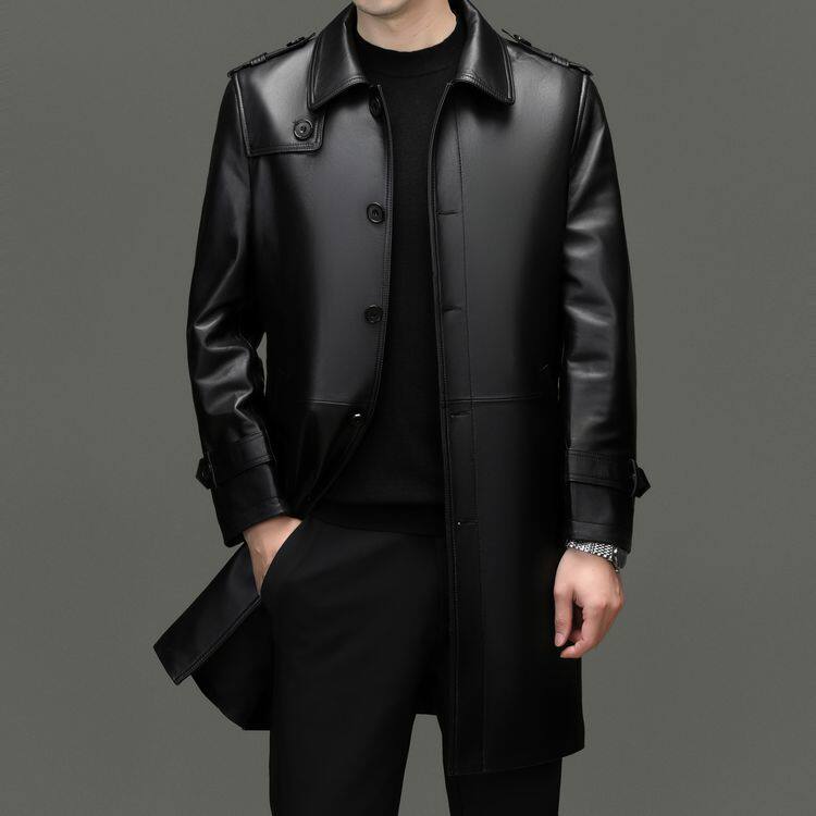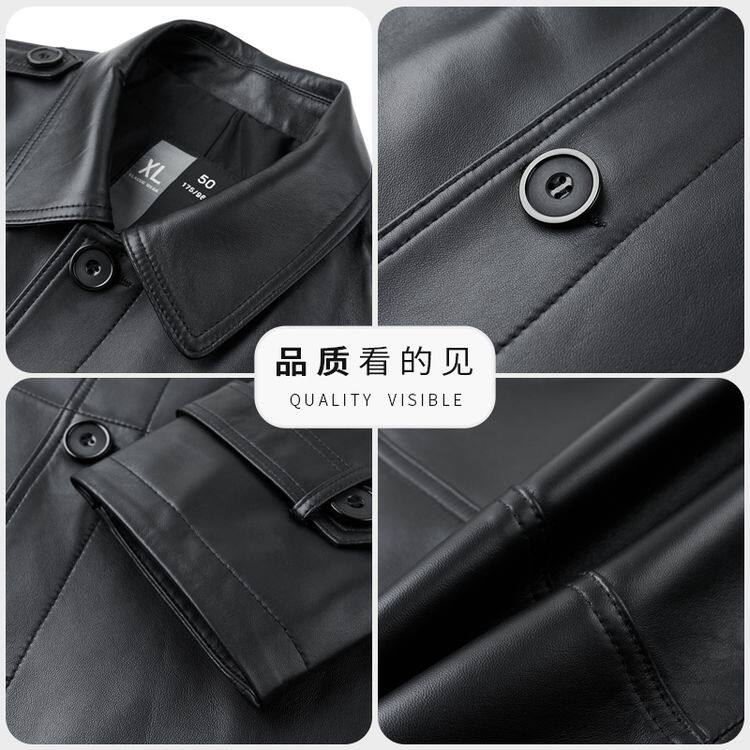 海宁真皮皮衣男士绵羊皮大衣翻领休闲秋冬装中长新款风衣男装外套
