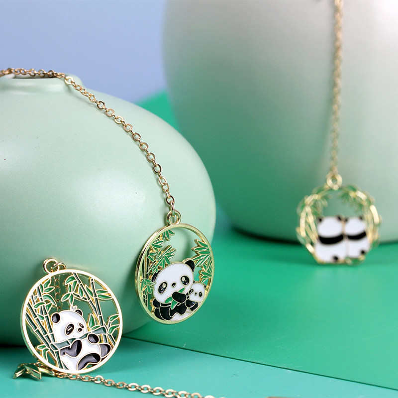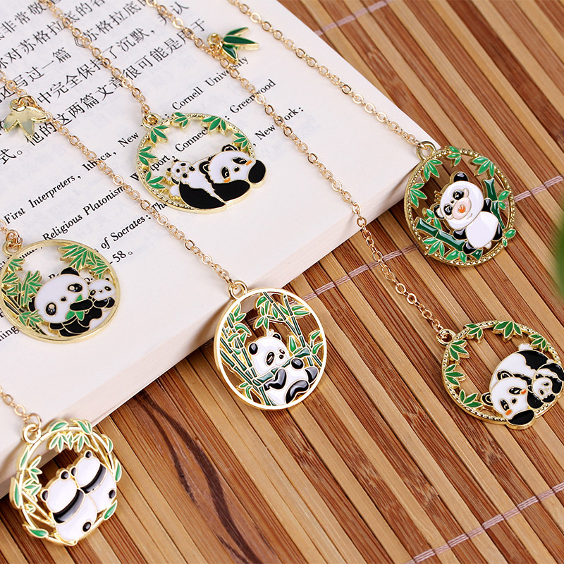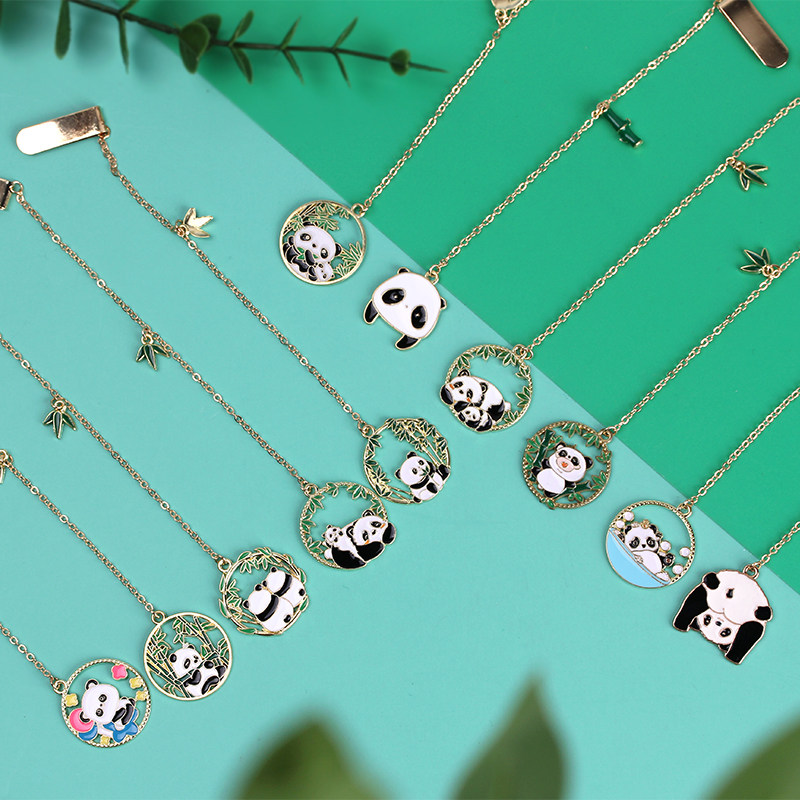 可爱熊猫金属书签卡通吊坠书页夹中小学生期末奖品儿童节创意礼物