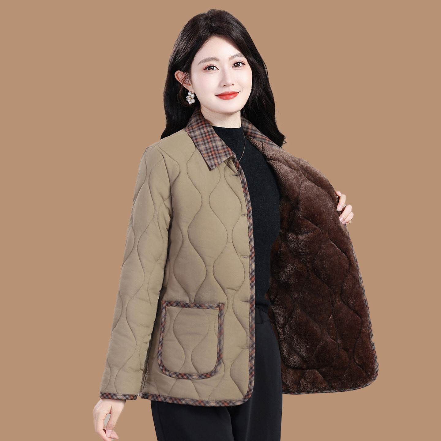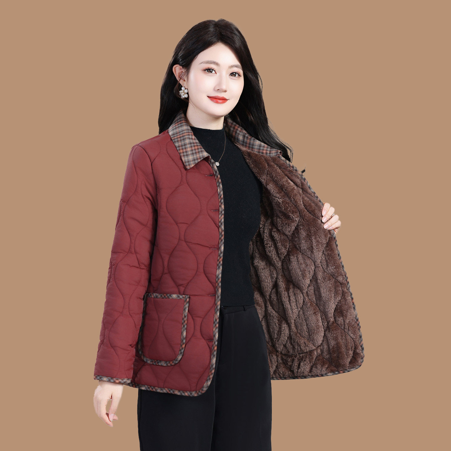 妈妈冬装新款女士加绒棉衣加厚保暖棉袄中老年女洋气翻领棉服外套