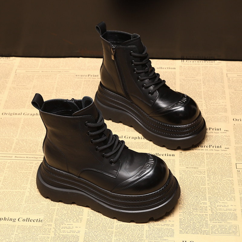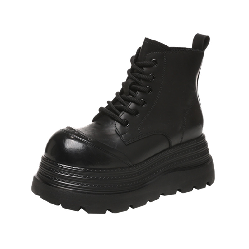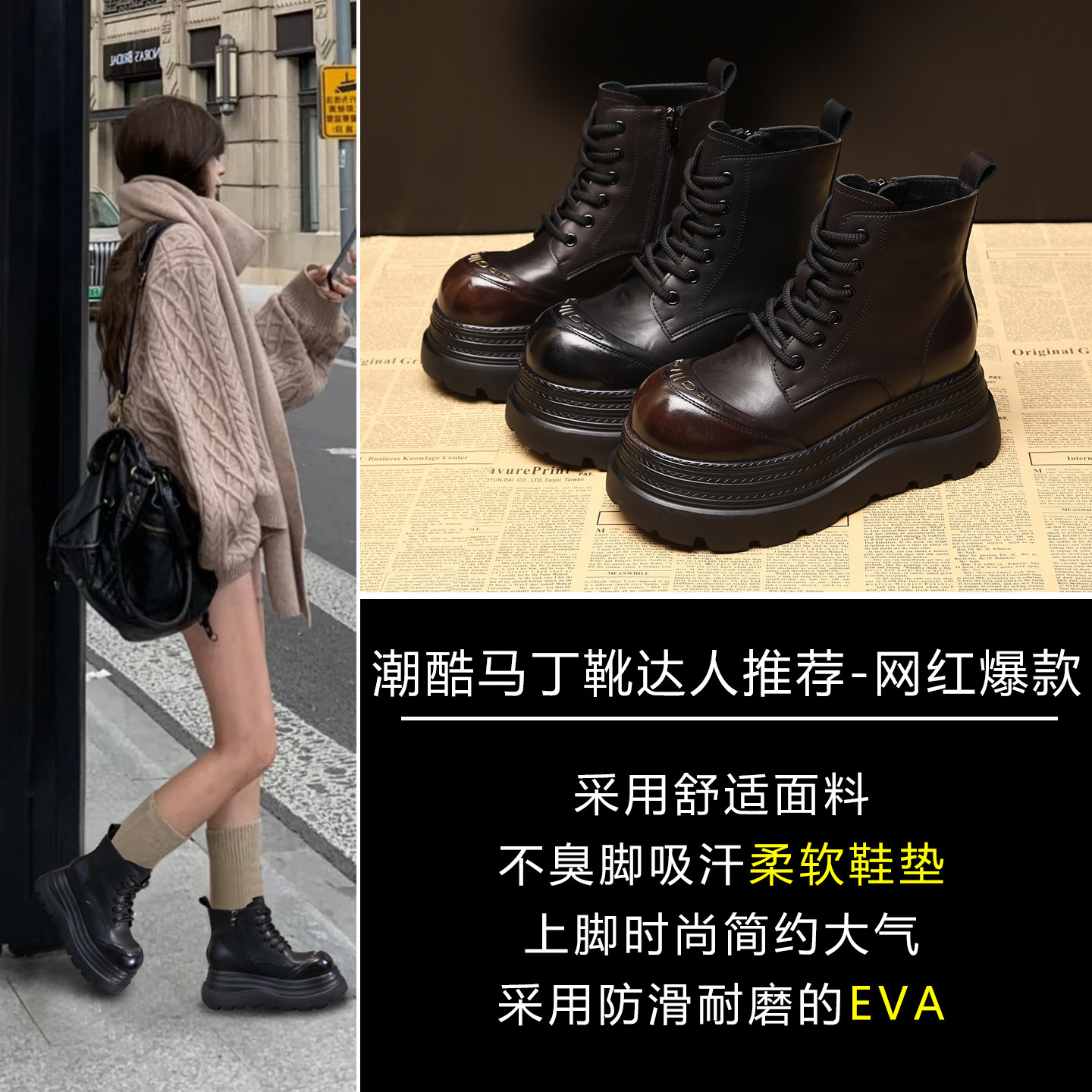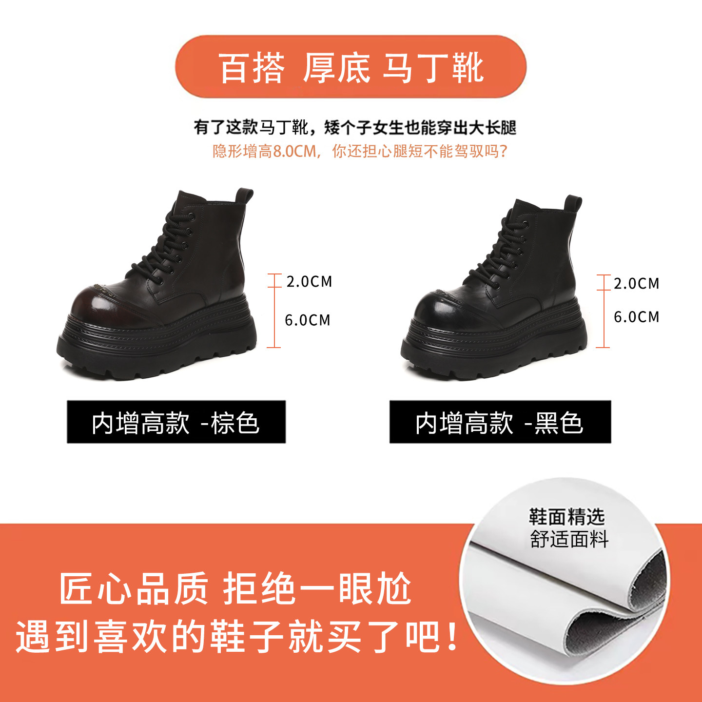 小个子真皮厚底马丁靴女2025秋季新款内增高8CM机车靴松糕小短靴