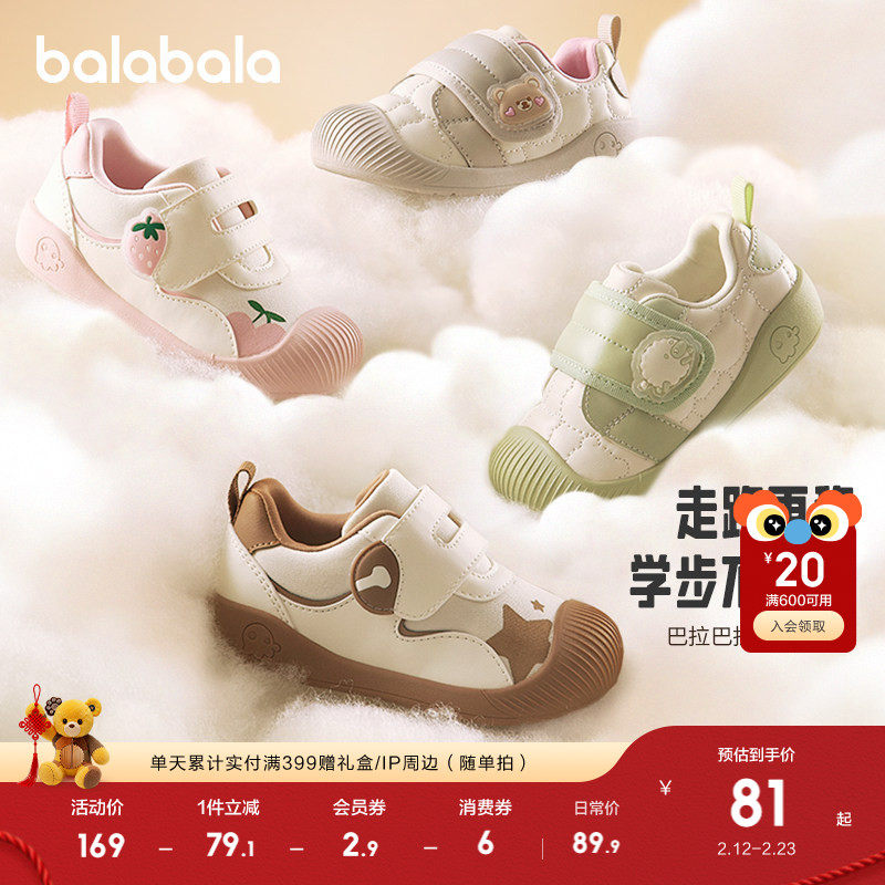 巴拉巴拉童鞋儿童学步鞋鞋子宝宝婴儿鞋春秋季男童女童软底魔术贴