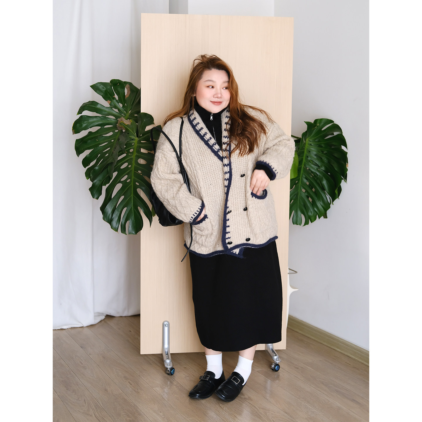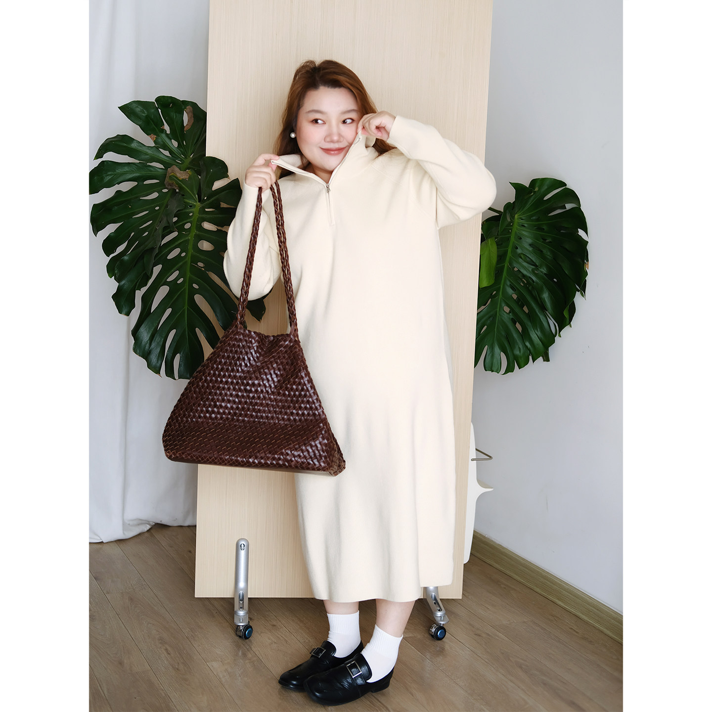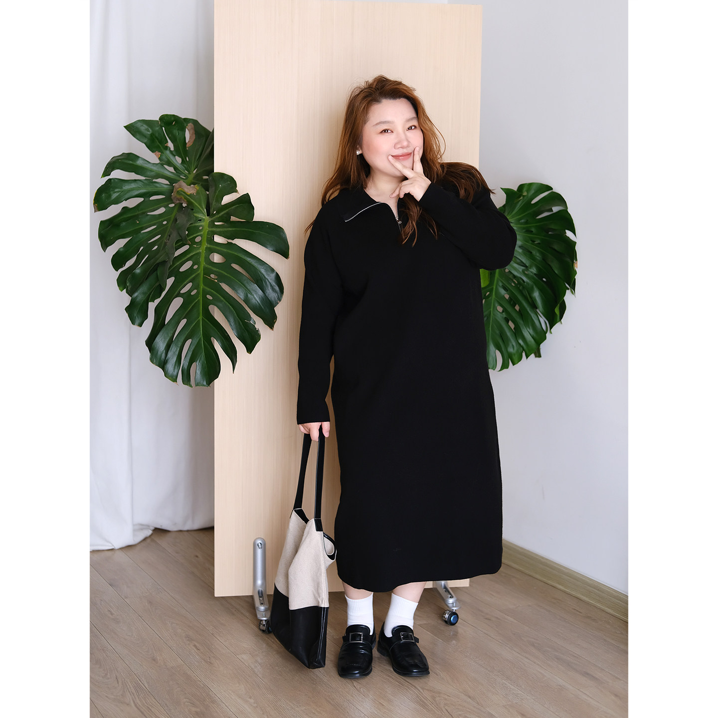 zooobaby12/08韩系简约翻领拉链高领长袖针织连衣裙女显瘦毛衣裙