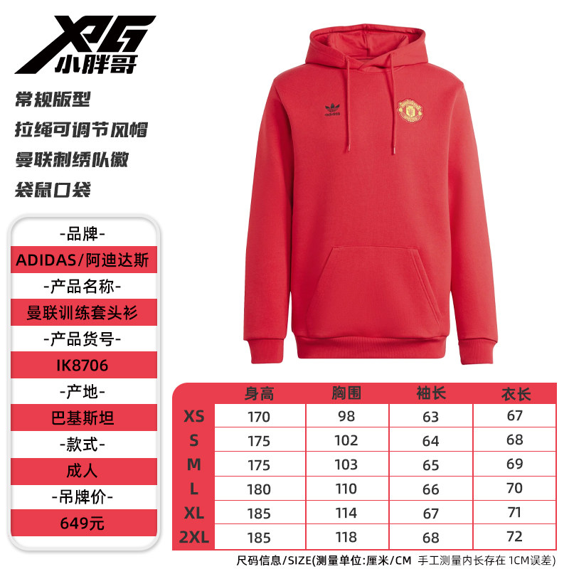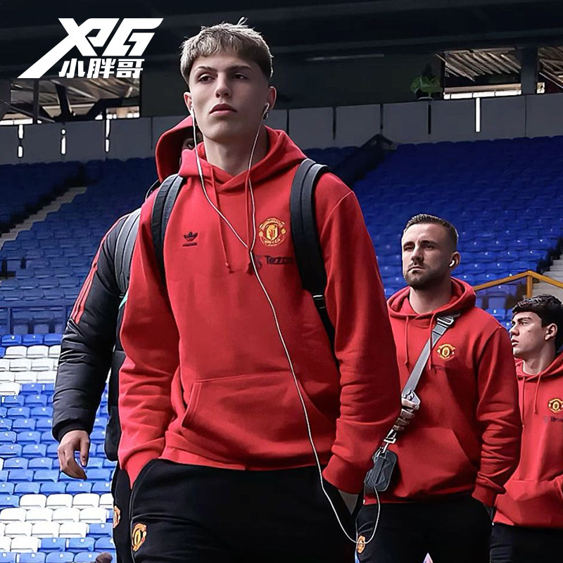 小胖哥XPG阿迪达斯曼联足球运动休闲连帽套头衫卫衣上衣外套男女