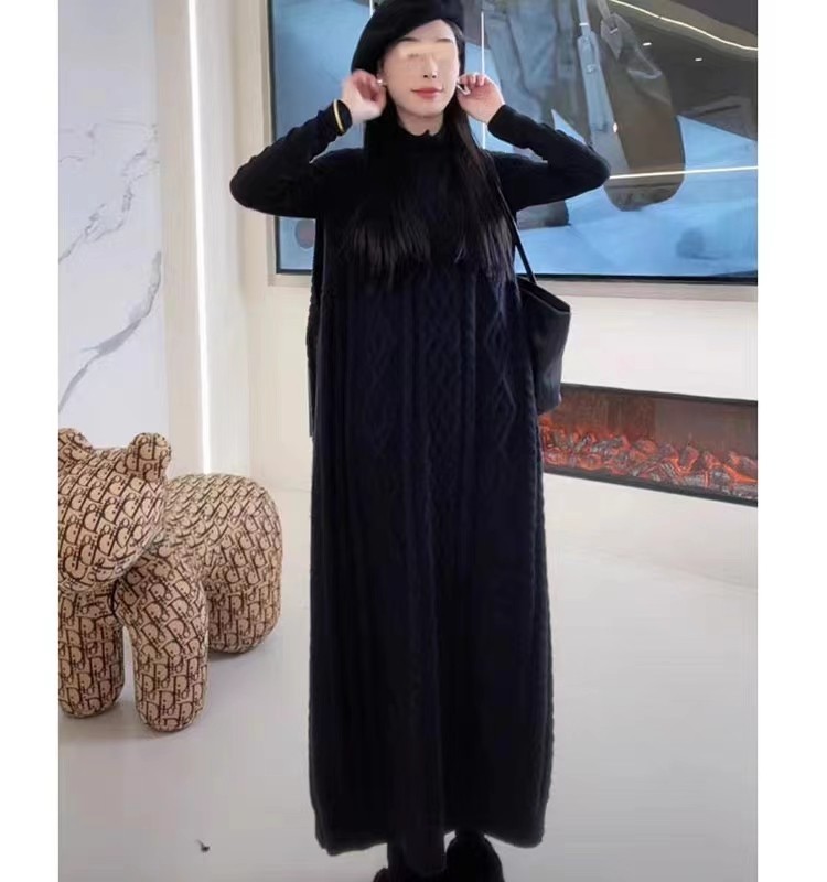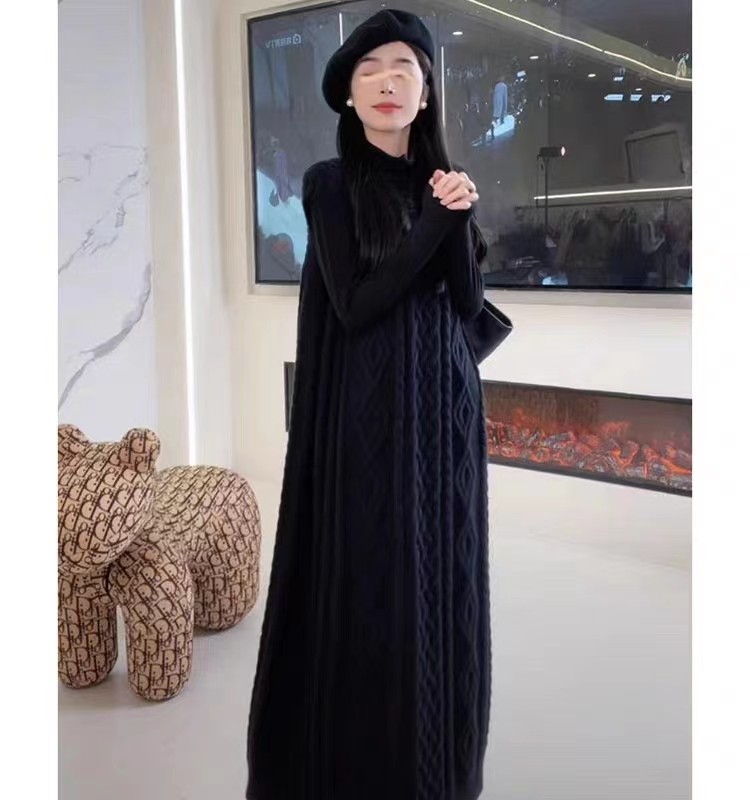 慵懒加厚宽松长款毛衣马甲裙秋冬外穿内搭麻花菱形百搭针织连衣裙