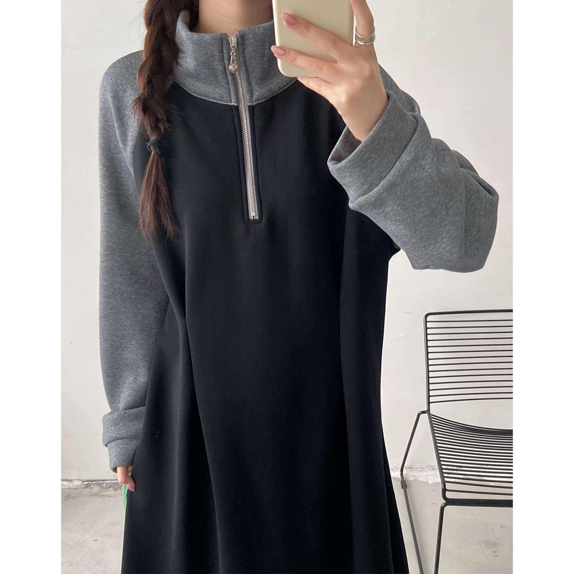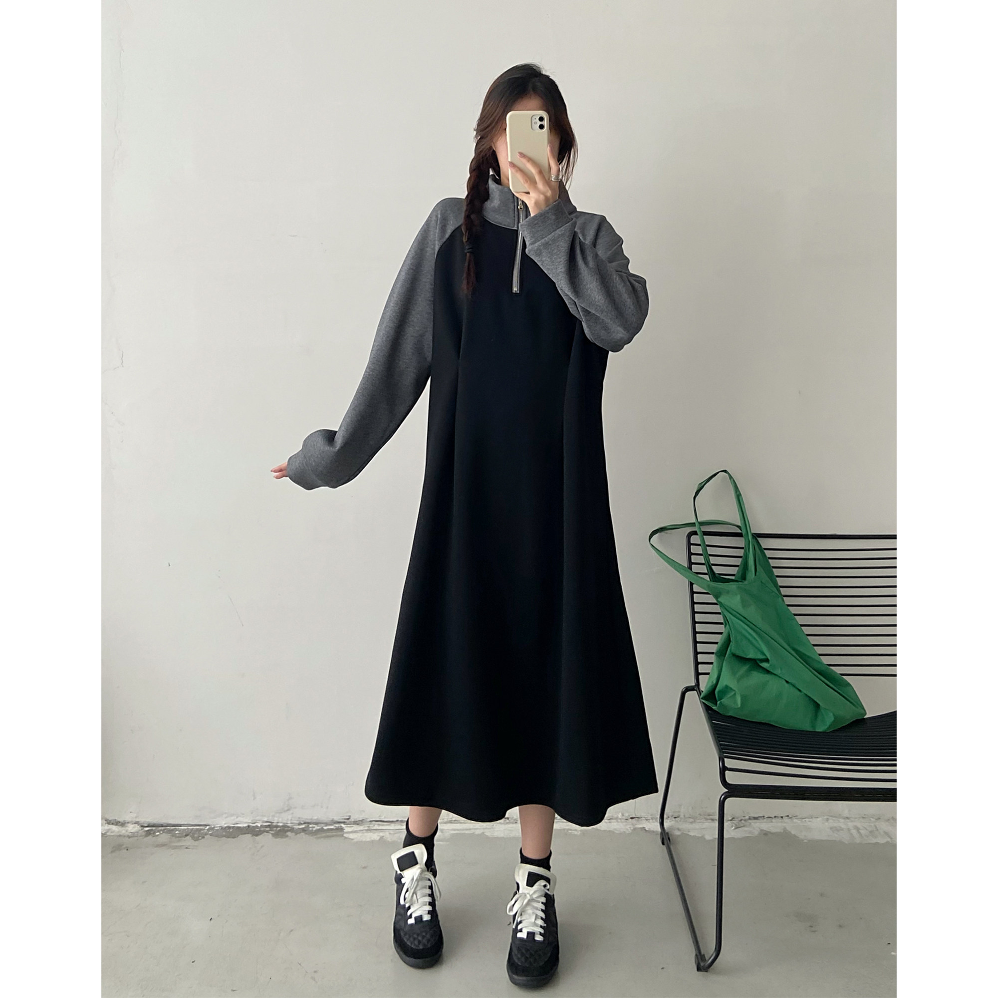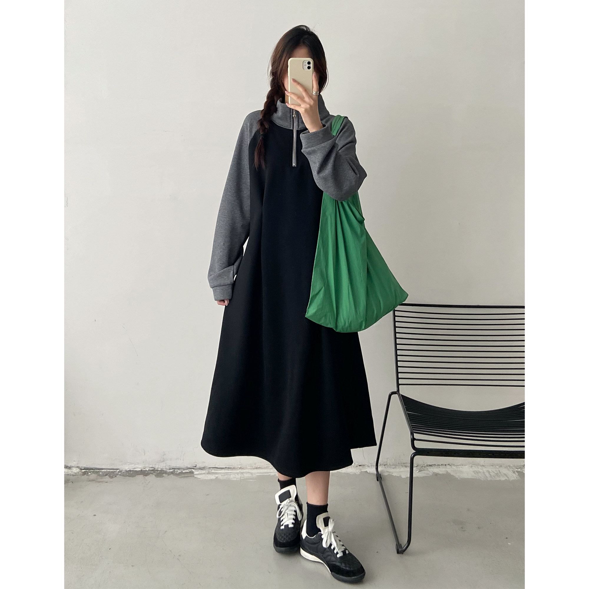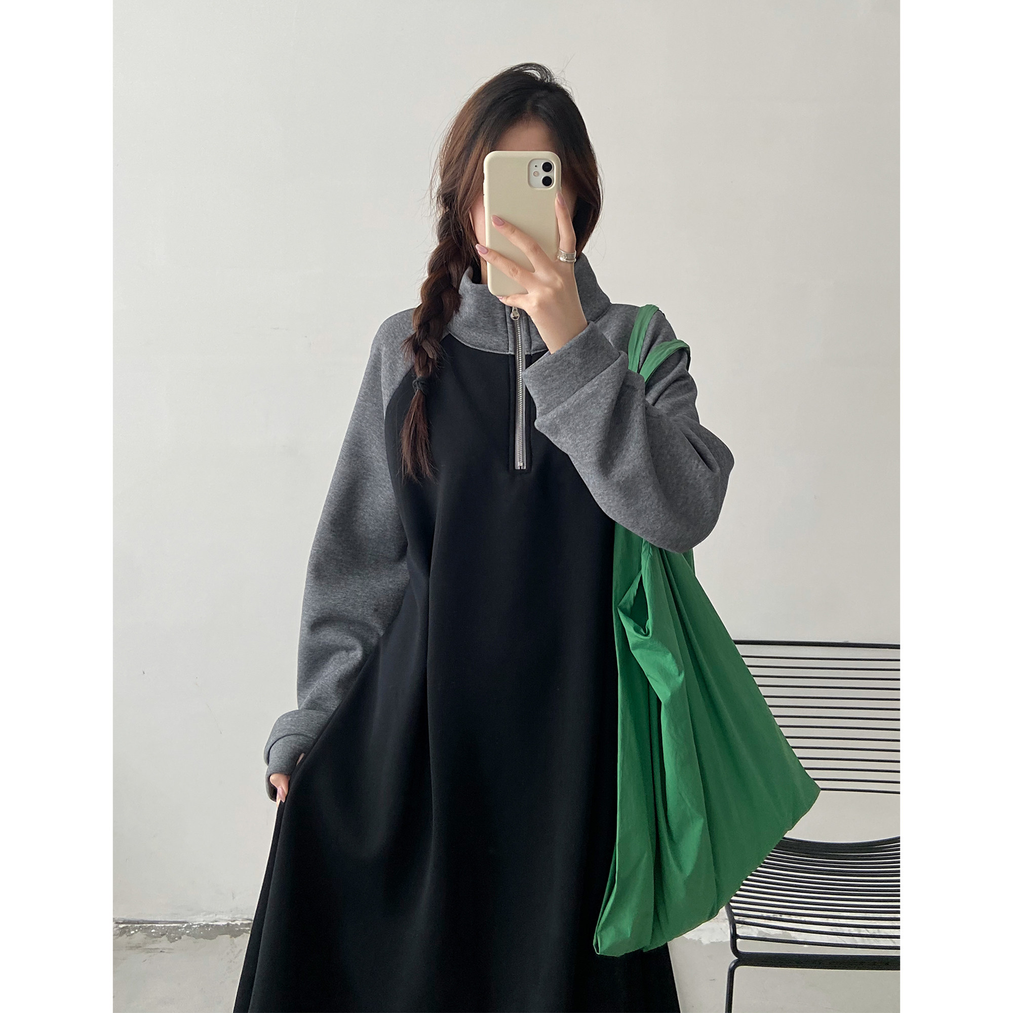 大码胖mm穿搭连衣裙女秋冬新款加绒加厚内搭打底a字裙子卫衣长裙