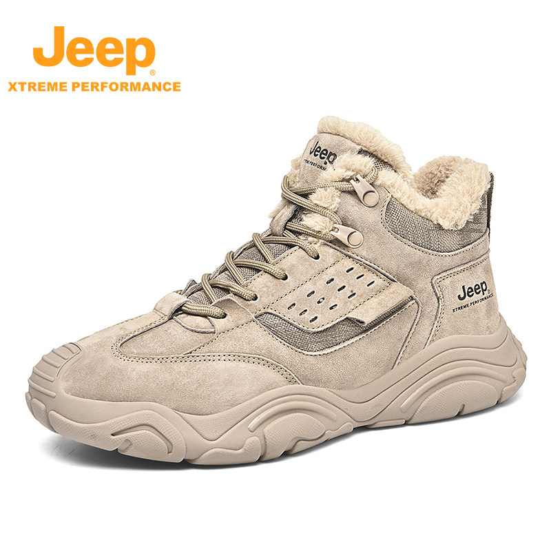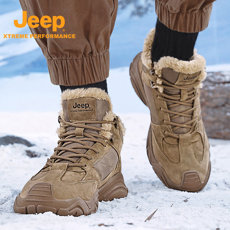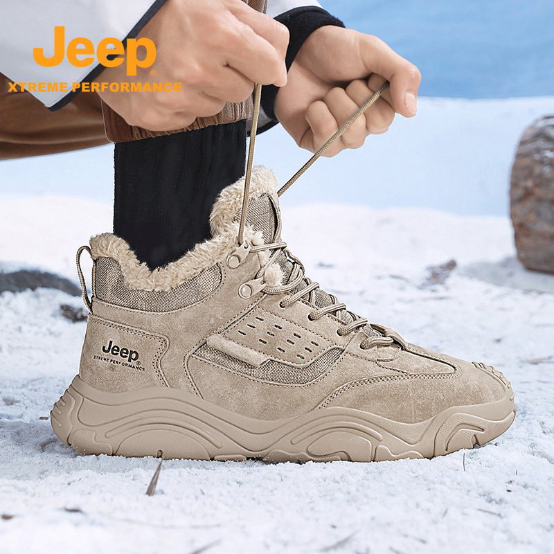 Jeep男士加绒徒步靴防滑耐磨登山靴新款包头运动鞋中帮休闲露营鞋