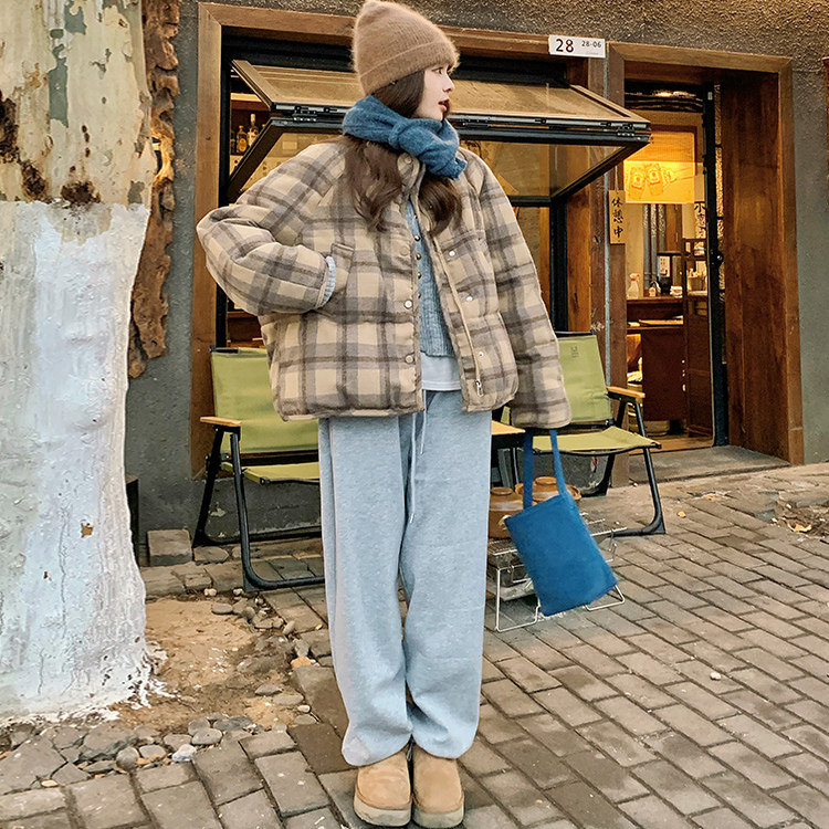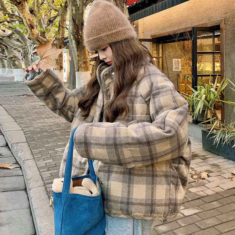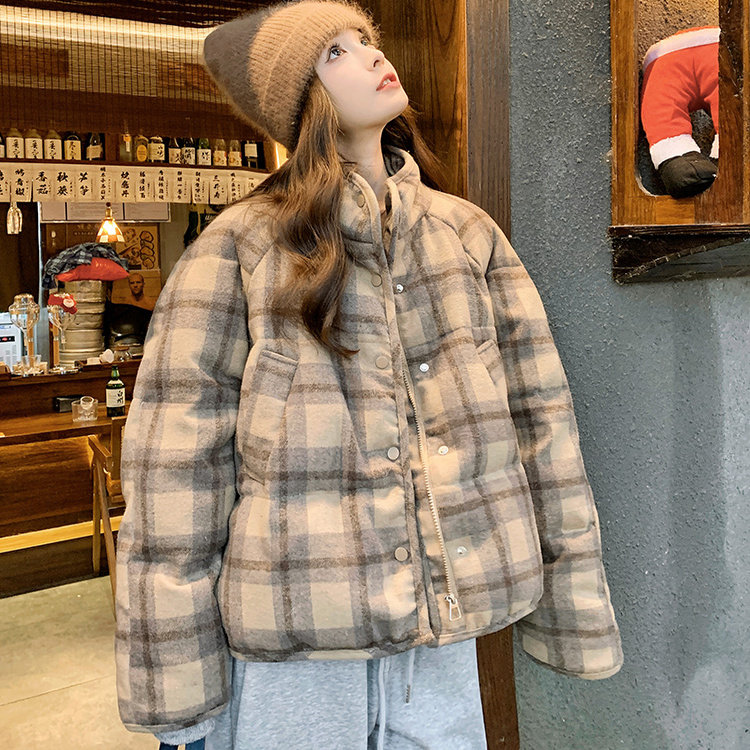 韩系格子短款棉服女冬季2025新款加厚好看棉衣小个子女款棉袄外套
