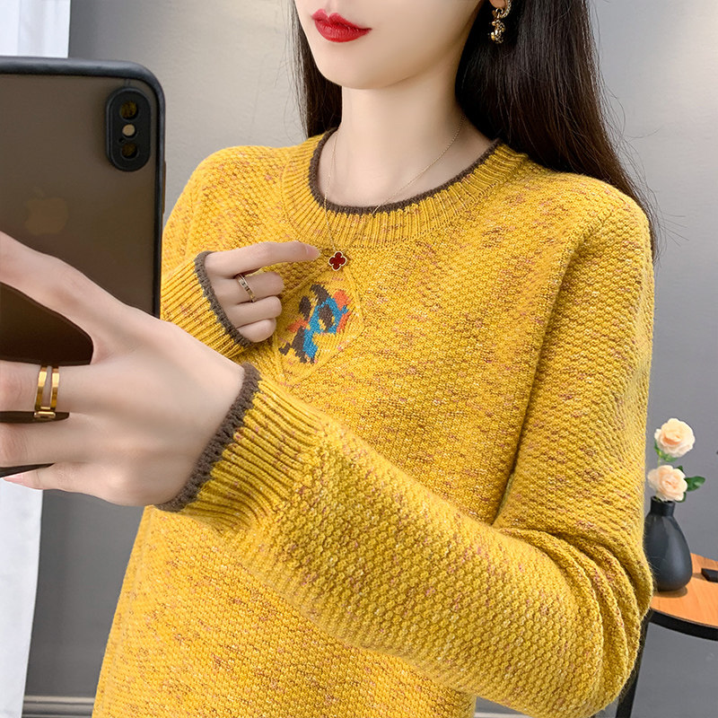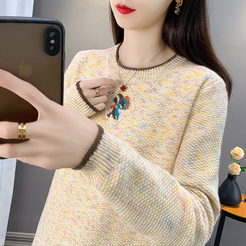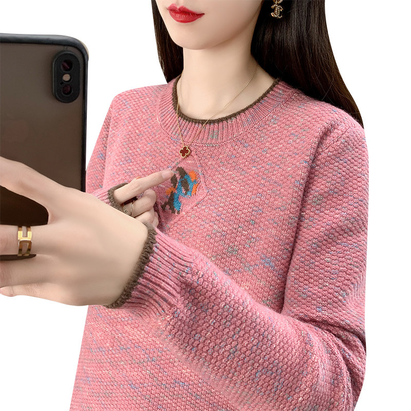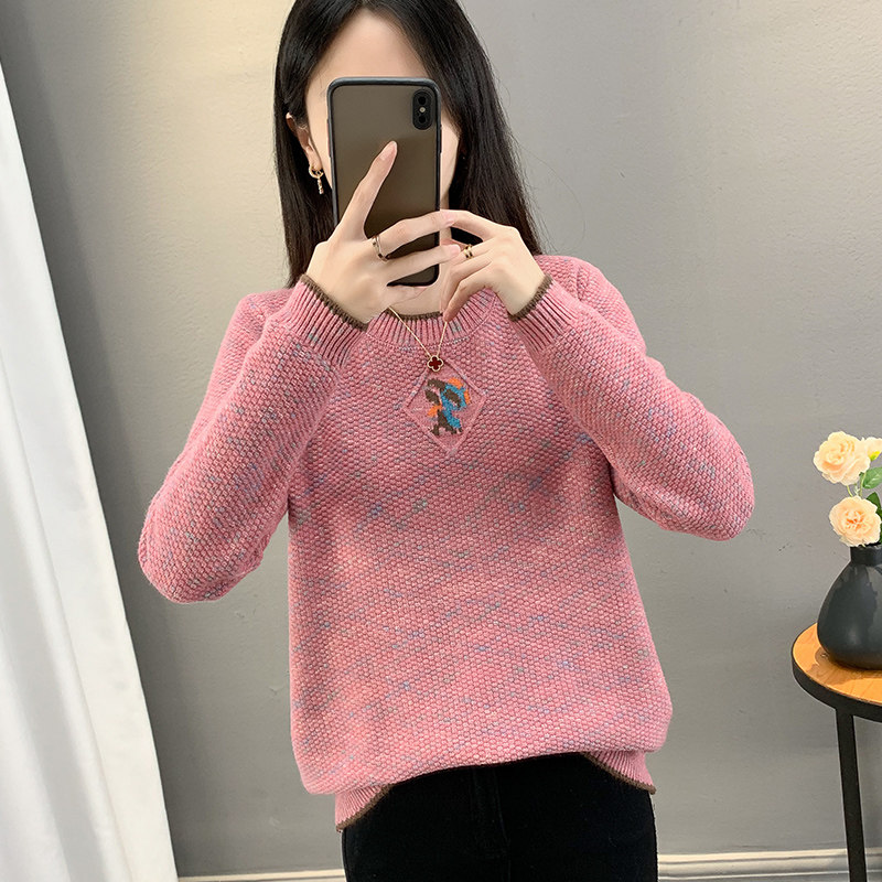 毛衣女款2025新款冬季针织衫宽松绣花内搭女上衣加绒加厚打底衫女