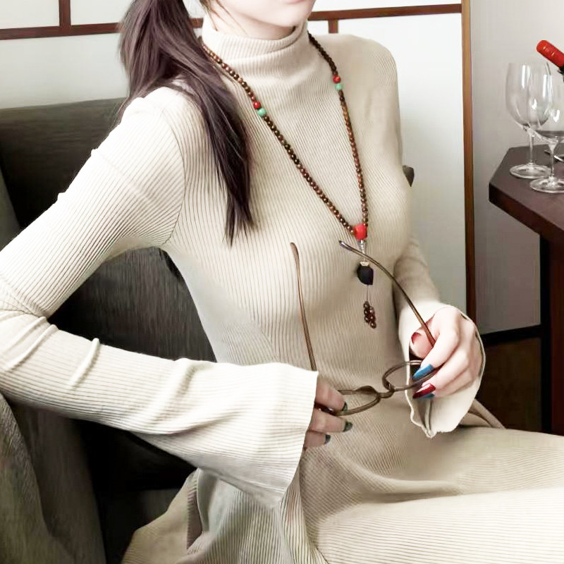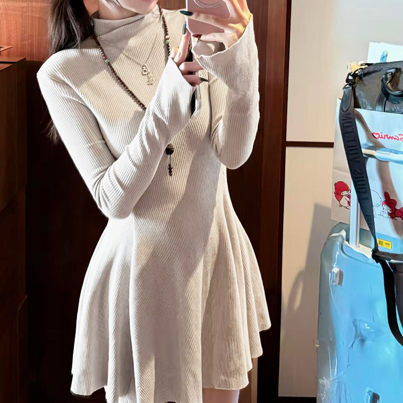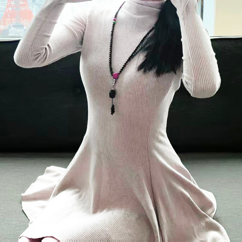 长袖针织连衣裙收腰显瘦外穿裙子2025秋冬新款大衣内搭打底掐腰裙