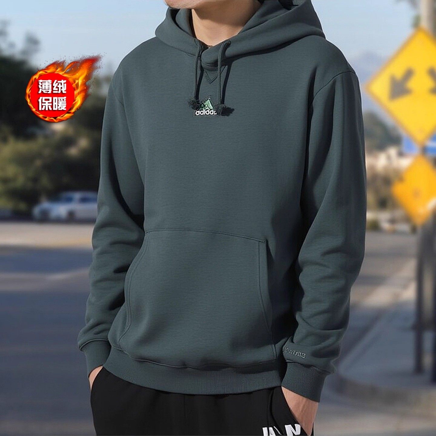 Adidas阿迪达斯卫衣男女运动休闲服加绒保暖长袖连帽套头衫IS1463