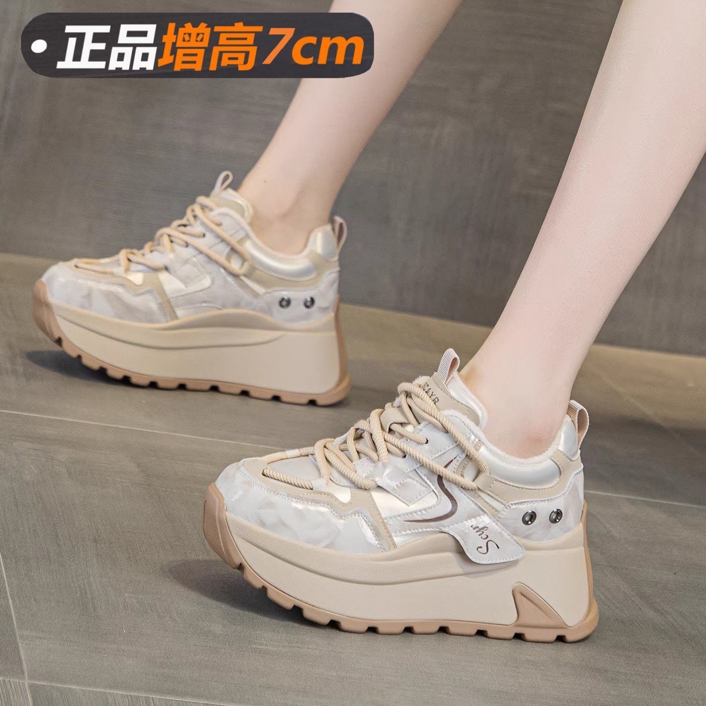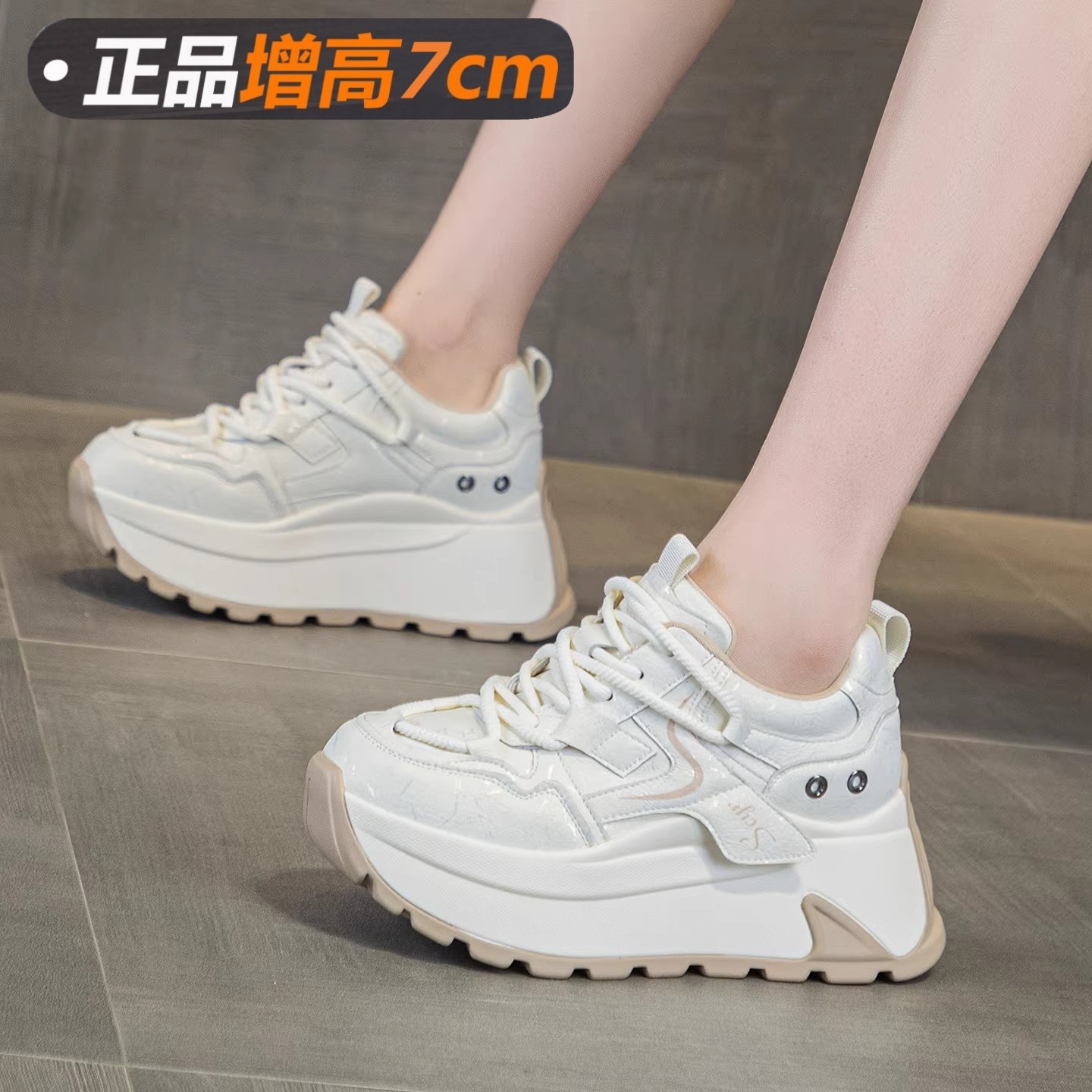 厚底老爹鞋女款2025冬季加绒新款超火爆款内增高不累脚灰色休闲鞋