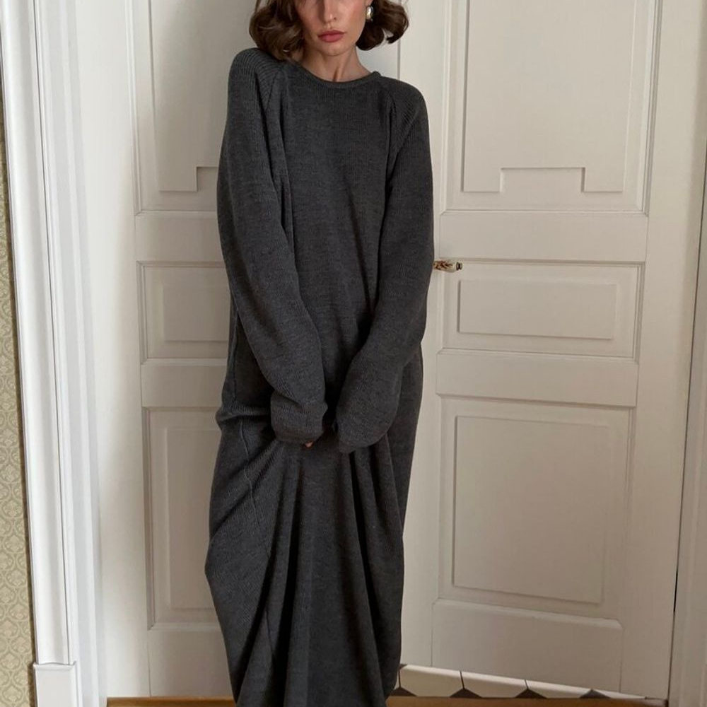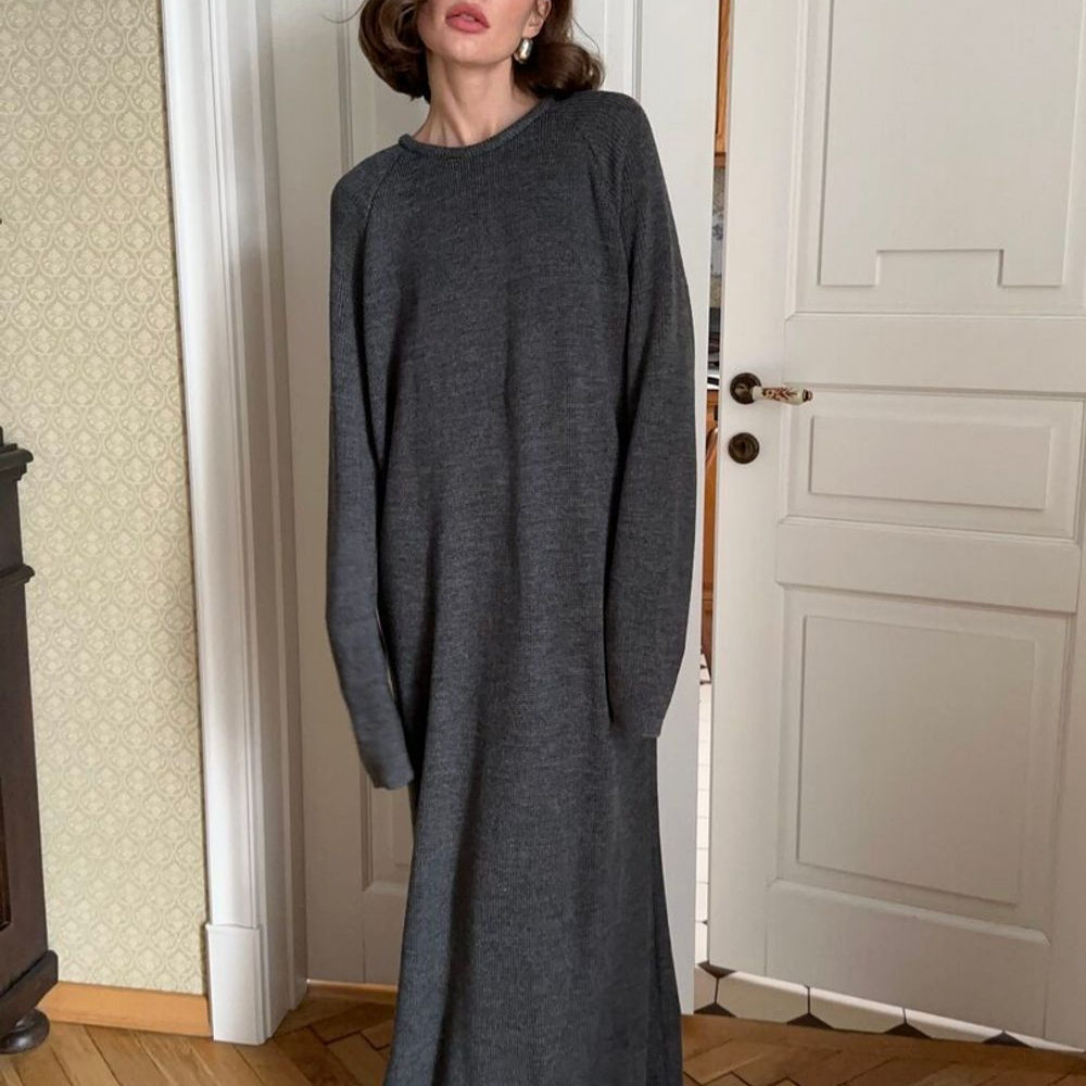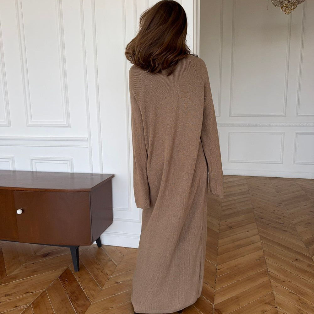 秋冬季纯色毛衣裙女加长款过膝宽松显瘦到脚踝拖地针织连衣裙长裙