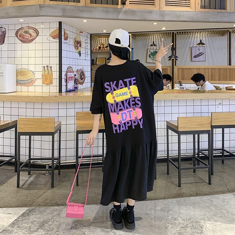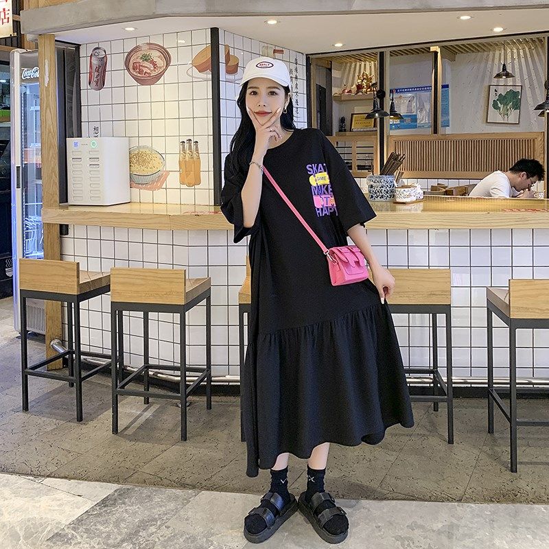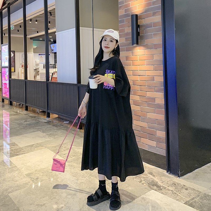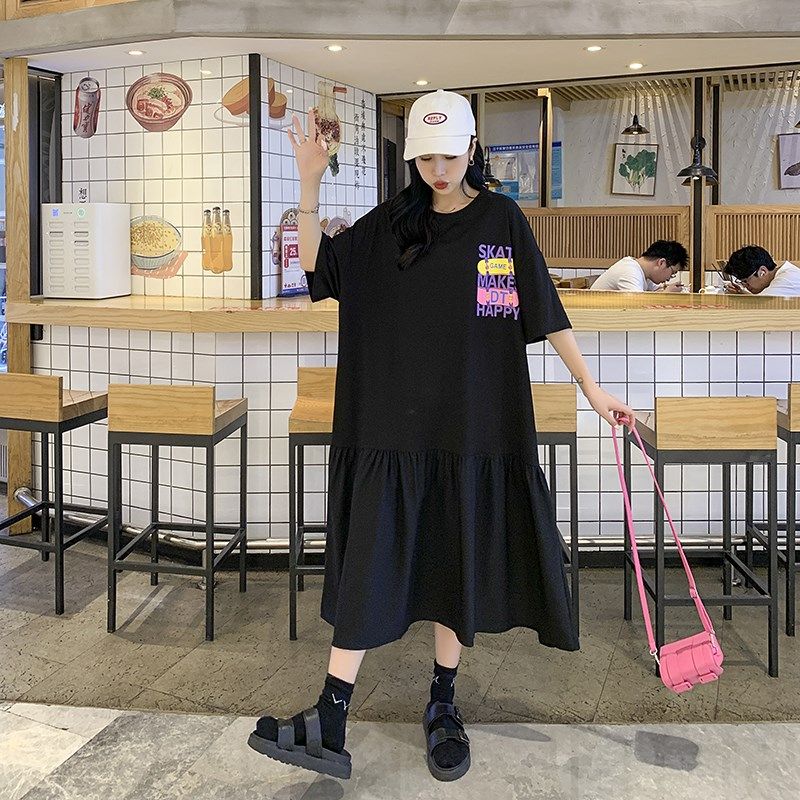 加大码胖mm连衣裙巨显瘦宽松遮肚子裙子夏天短袖洋气2025年新款夏