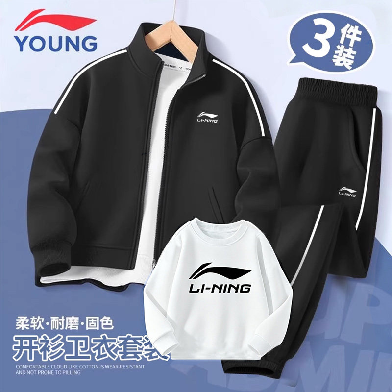 李宁童装儿童套装春季新款男童男孩外套卫裤两件套青少年运动服