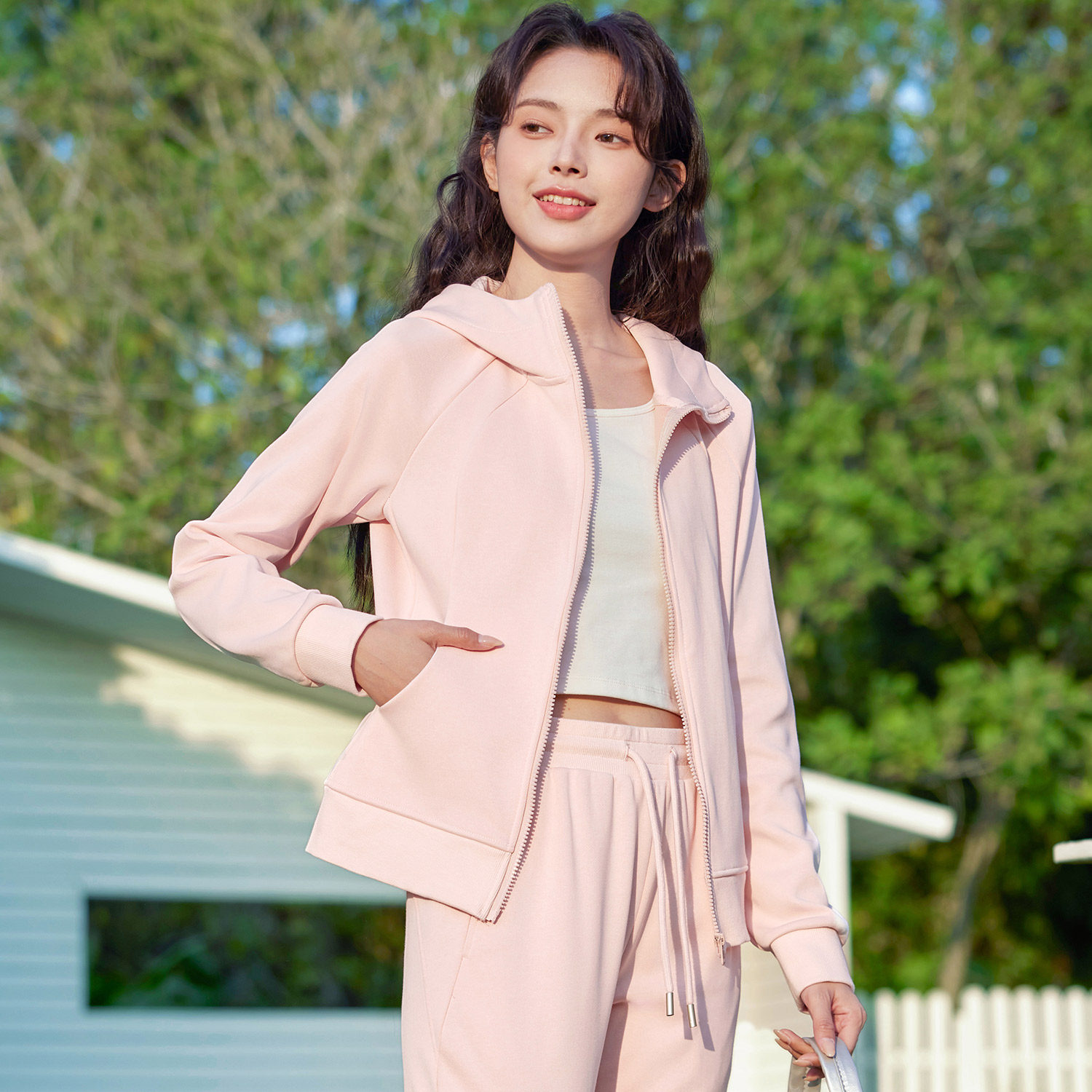 班尼路灰色短款外套卫衣女款2026春季新款连帽修身显瘦开衫上衣H