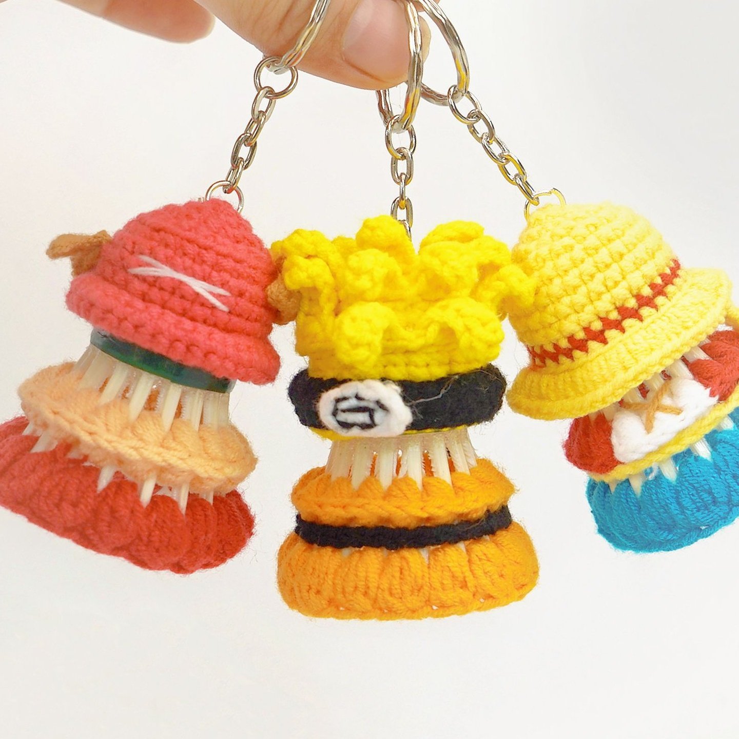 手工钩织成品羽毛球挂饰包包挂件卡通动漫鸣人乔巴路飞钥匙扣礼物