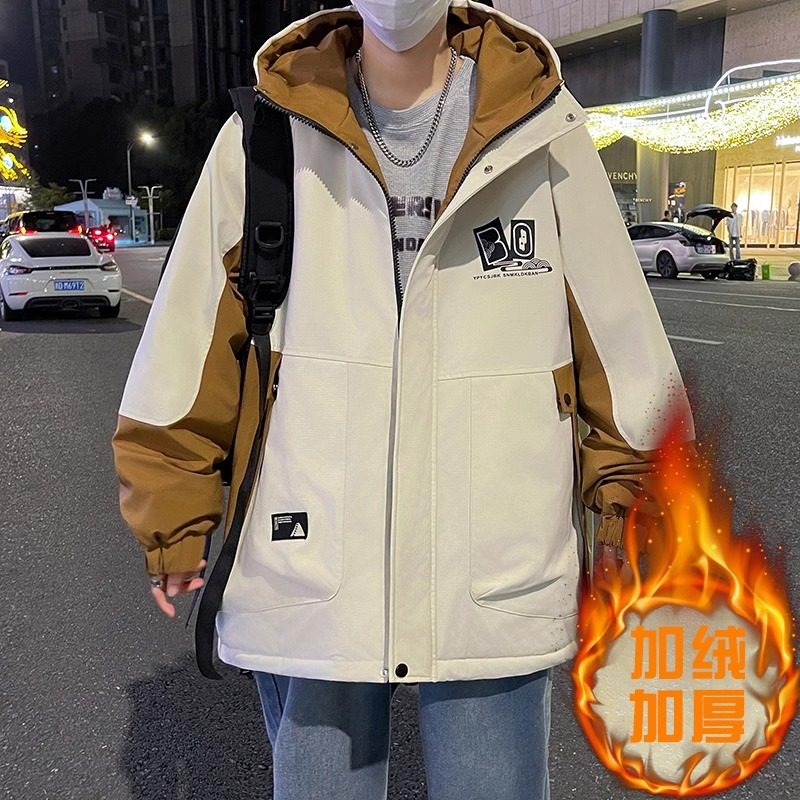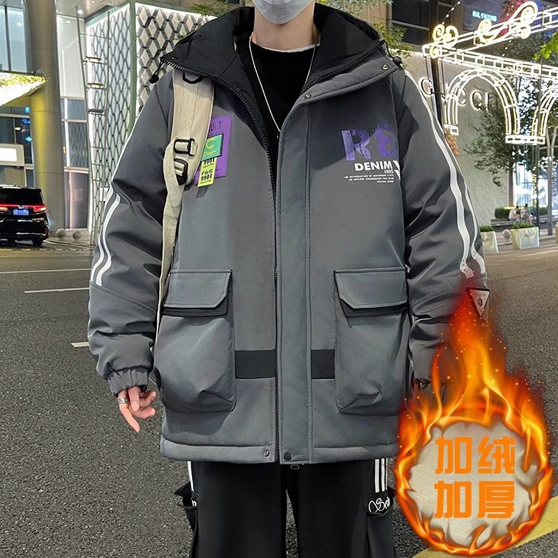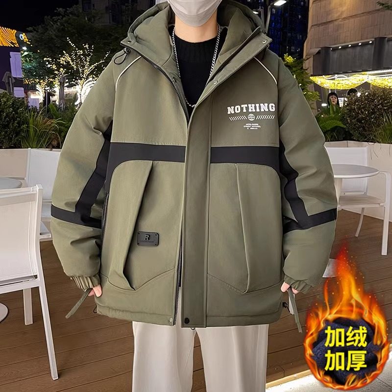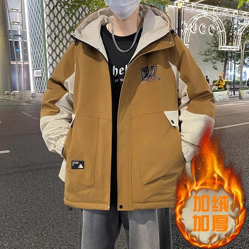 秋冬款加绒外套男孩初中高中学生帅气加厚棉衣青少年大童冬装夹克