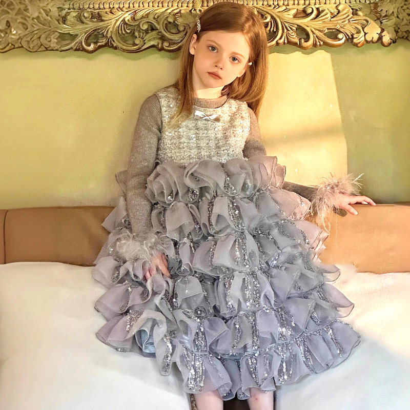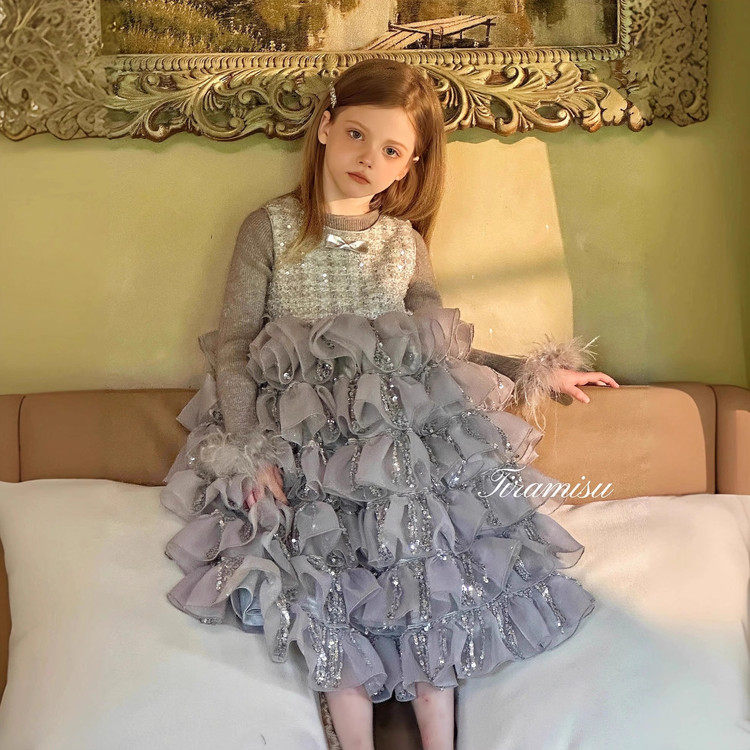 女童小香风连衣裙秋冬新款儿童生日礼服洋气公主裙高级感绝美童装