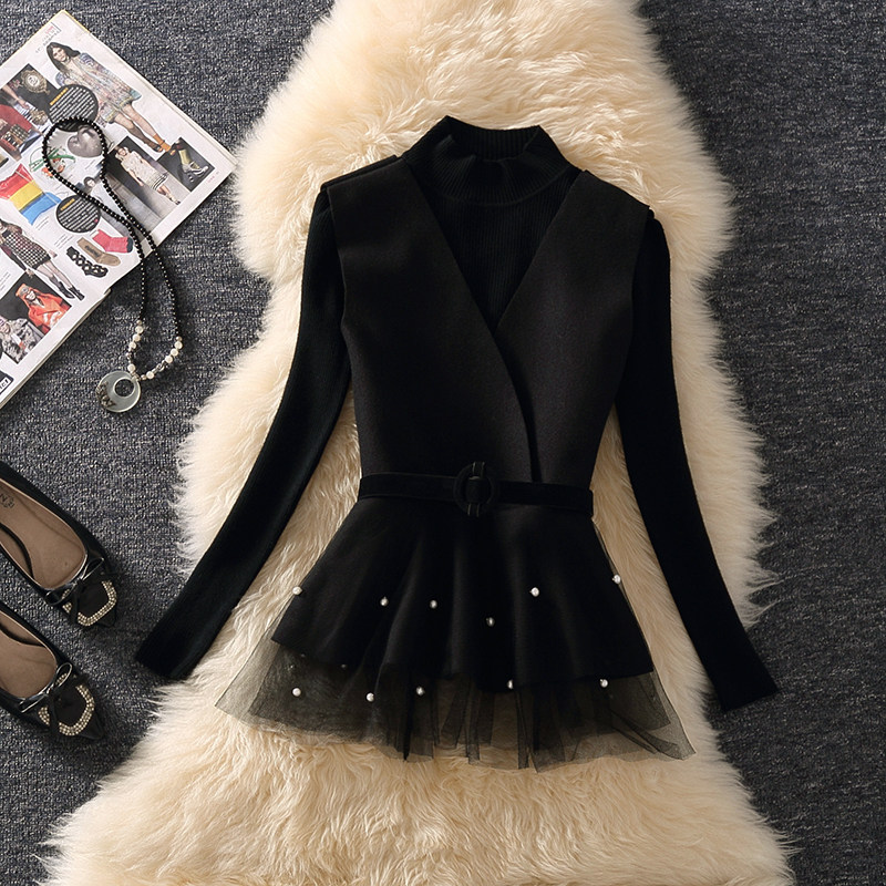 马甲女2026新款早春毛呢马甲女背心斜肩荷叶边钉珠网纱马夹女外套