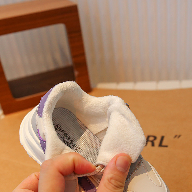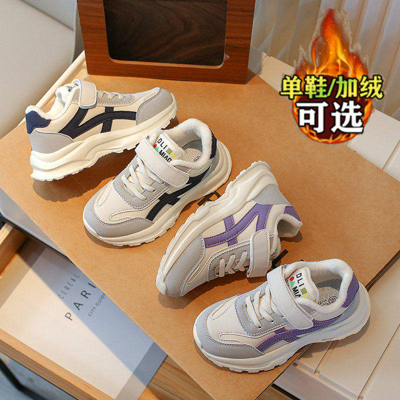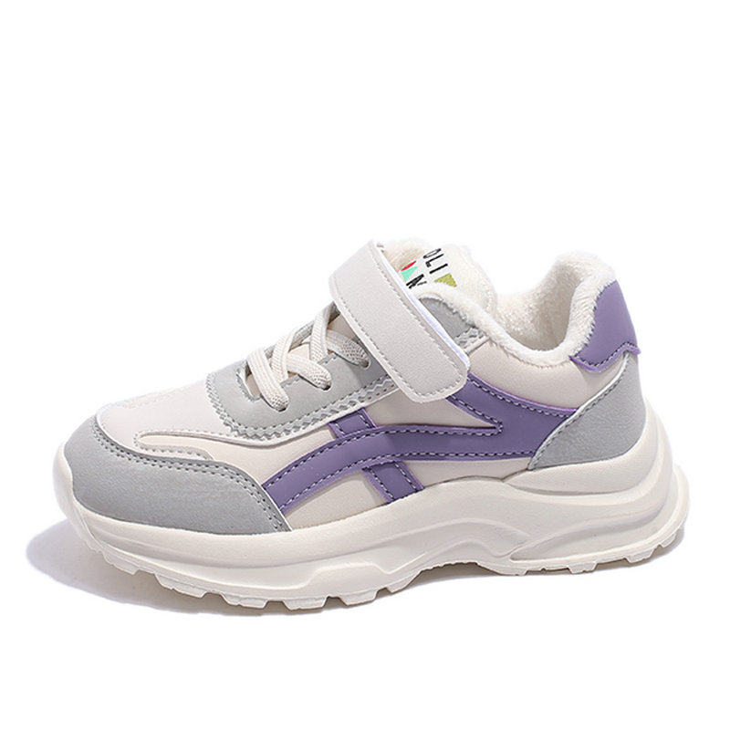 无鞋带运动鞋女秋冬初中学生大童女鞋加绒二棉女童轻便软底跑步鞋