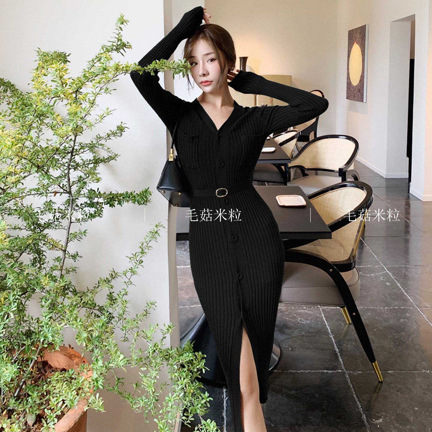 针织连衣裙女秋冬季轻奢高级感黑色修身显瘦气质配大衣内搭打底裙