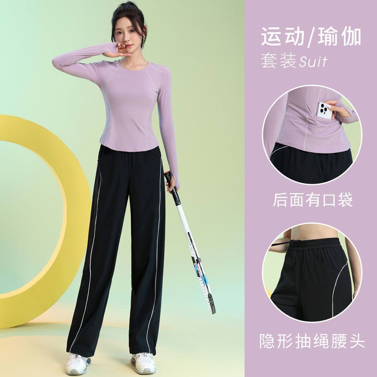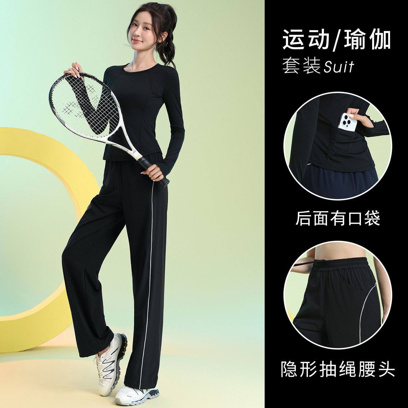 长袖健身服女网红爆款专业打羽毛球运动套装女秋季轻薄瑜伽服宽松