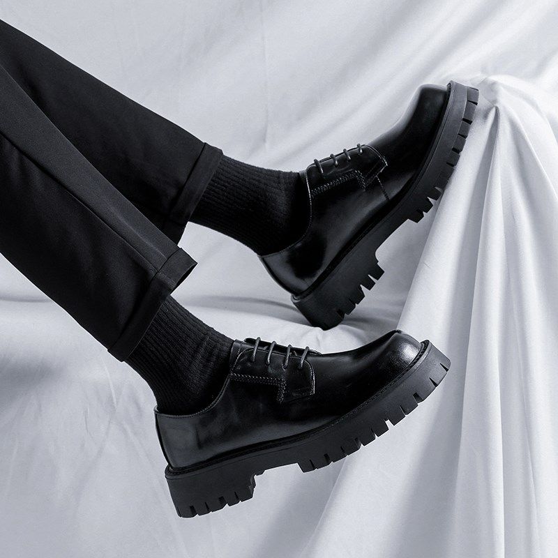 皮鞋男款正装商务黑色高级感英伦风男生大头厚底德比鞋增高休闲鞋