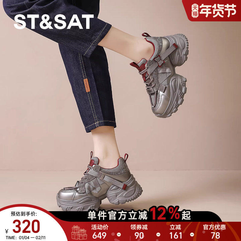 星期六厚底老爹鞋女款2025冬季新款加绒休闲运动鞋小个子增高女鞋