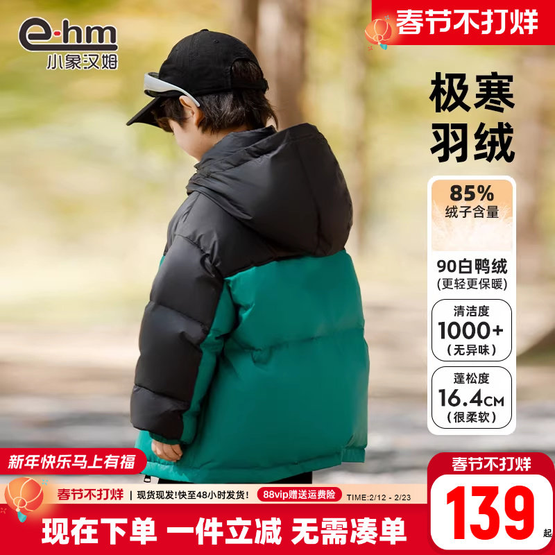 小象汉姆男童男童羽绒服2026新款中大童儿童外套冬装韩版白鸭绒