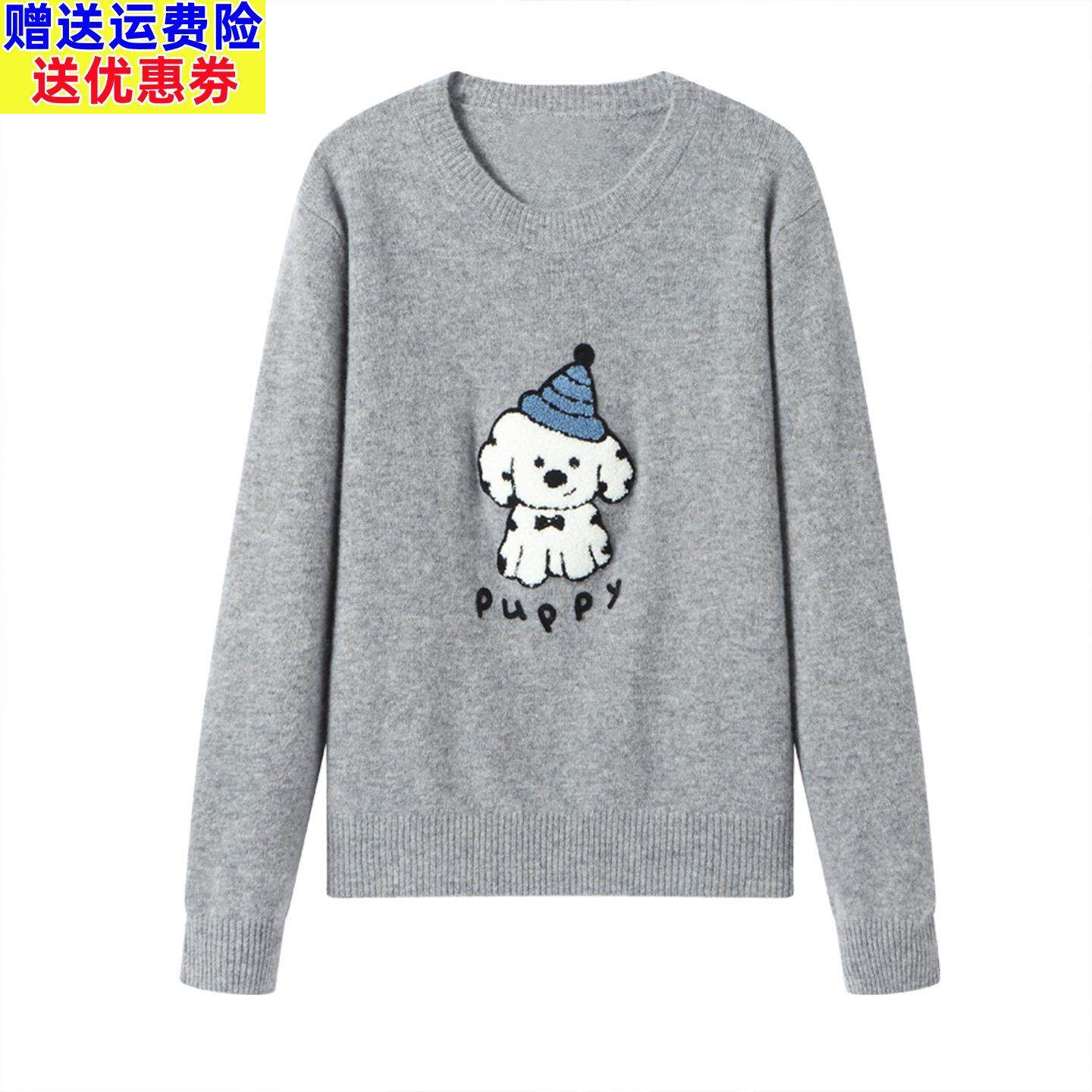 本命年红色毛衣女款2026新款冬季小狗提花圆领套头100%羊毛针织衫