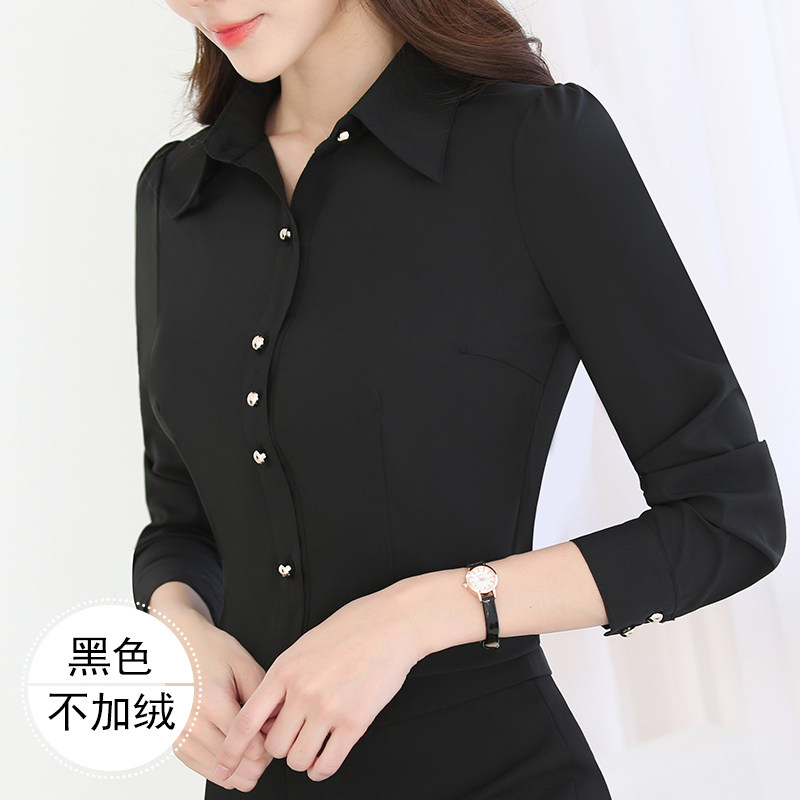 黑色衬衫女长袖修身春装2026新款时尚洋气黑衬衣气质上衣百搭寸衫