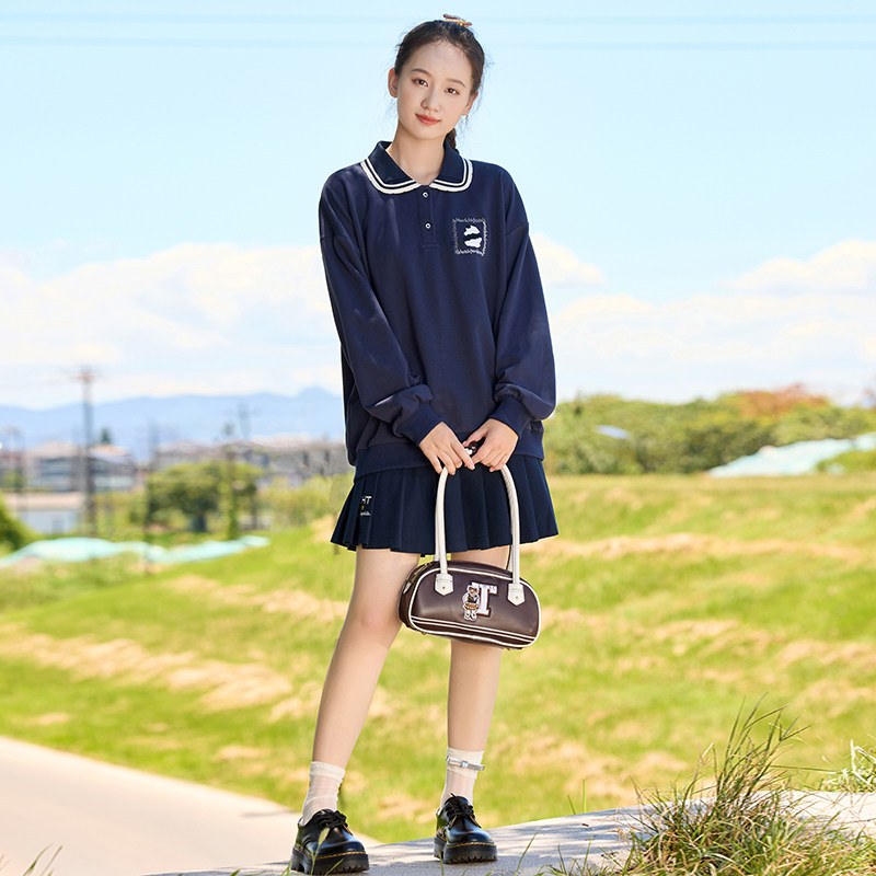 初中生百褶裙套装少女秋冬装高中大童13岁女孩长袖两件套裙学院风