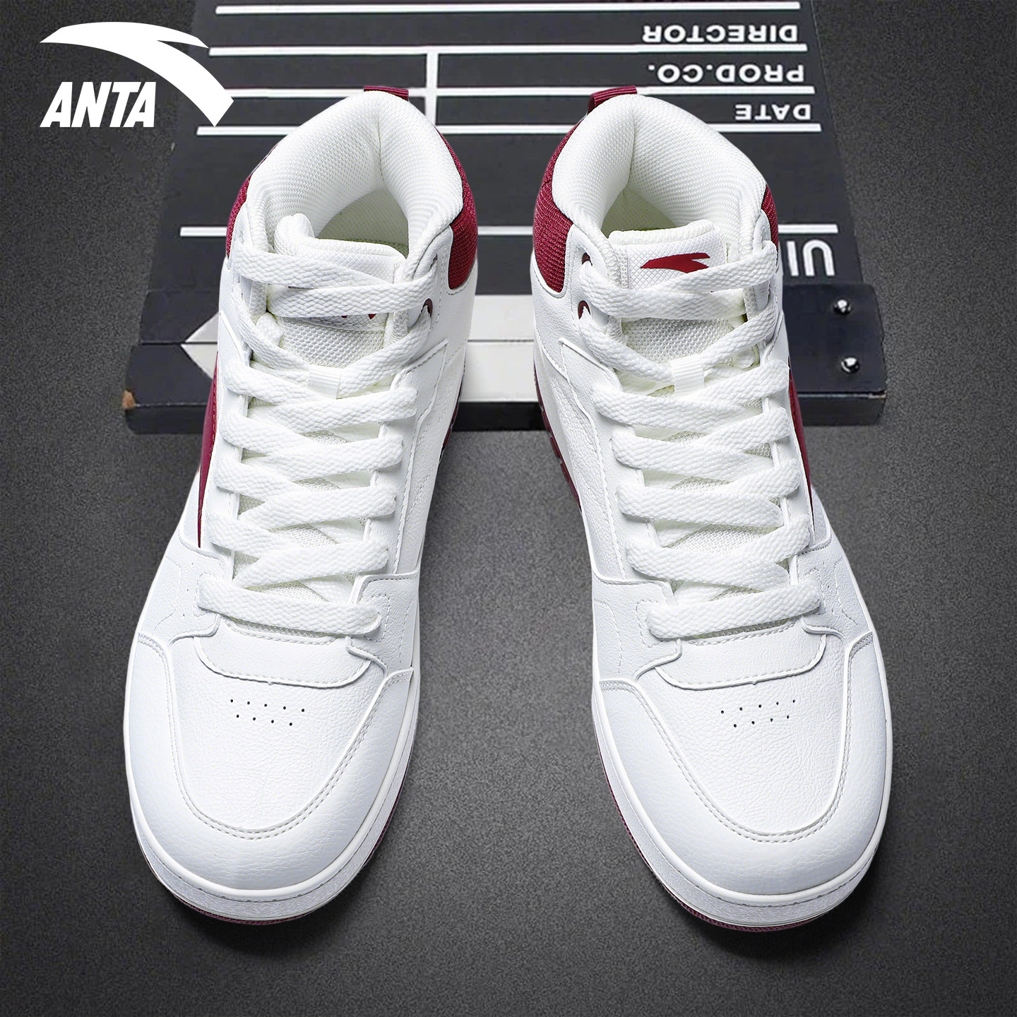 安踏高帮男鞋红色板鞋冬季2026新款青少年皮面男士潮流休闲鞋子男