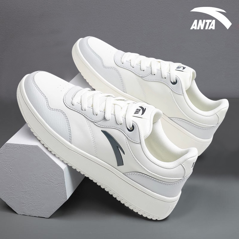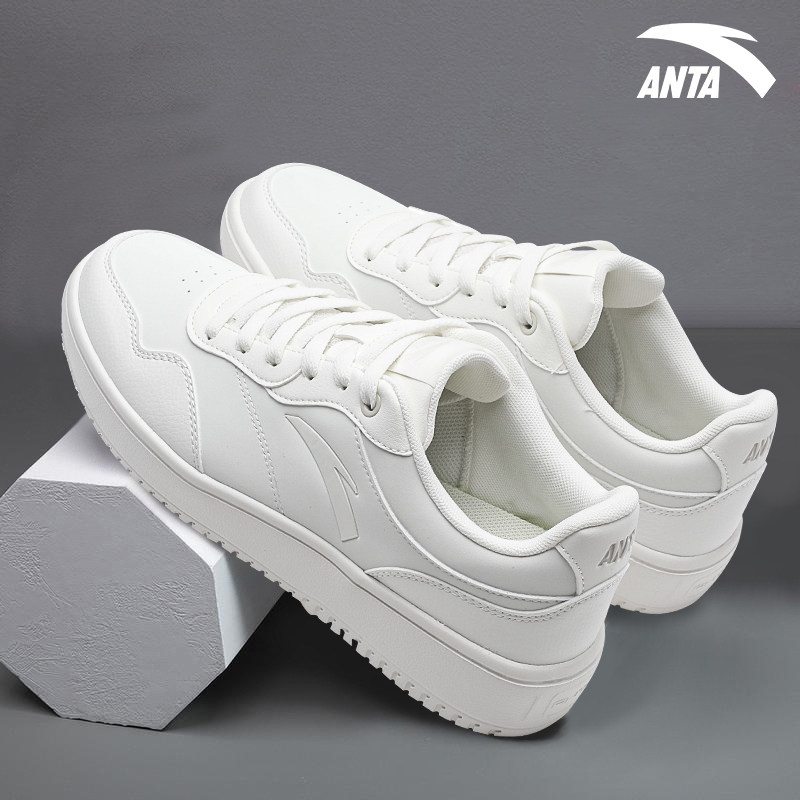 安踏男鞋板鞋冬季2025新款低帮经典小白鞋红色皮面厚底百搭运动鞋
