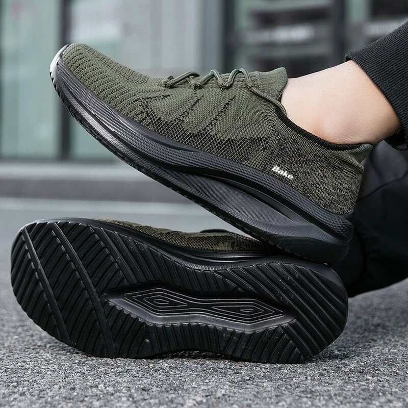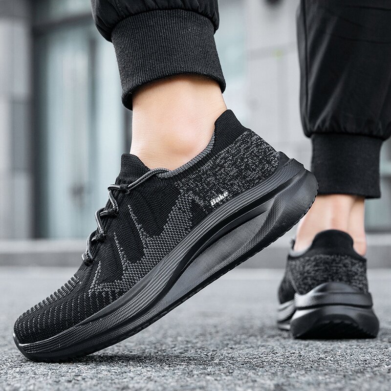 霸克休闲运动鞋男款青少年学生夏季纯色网面透气特大码户外跑步鞋