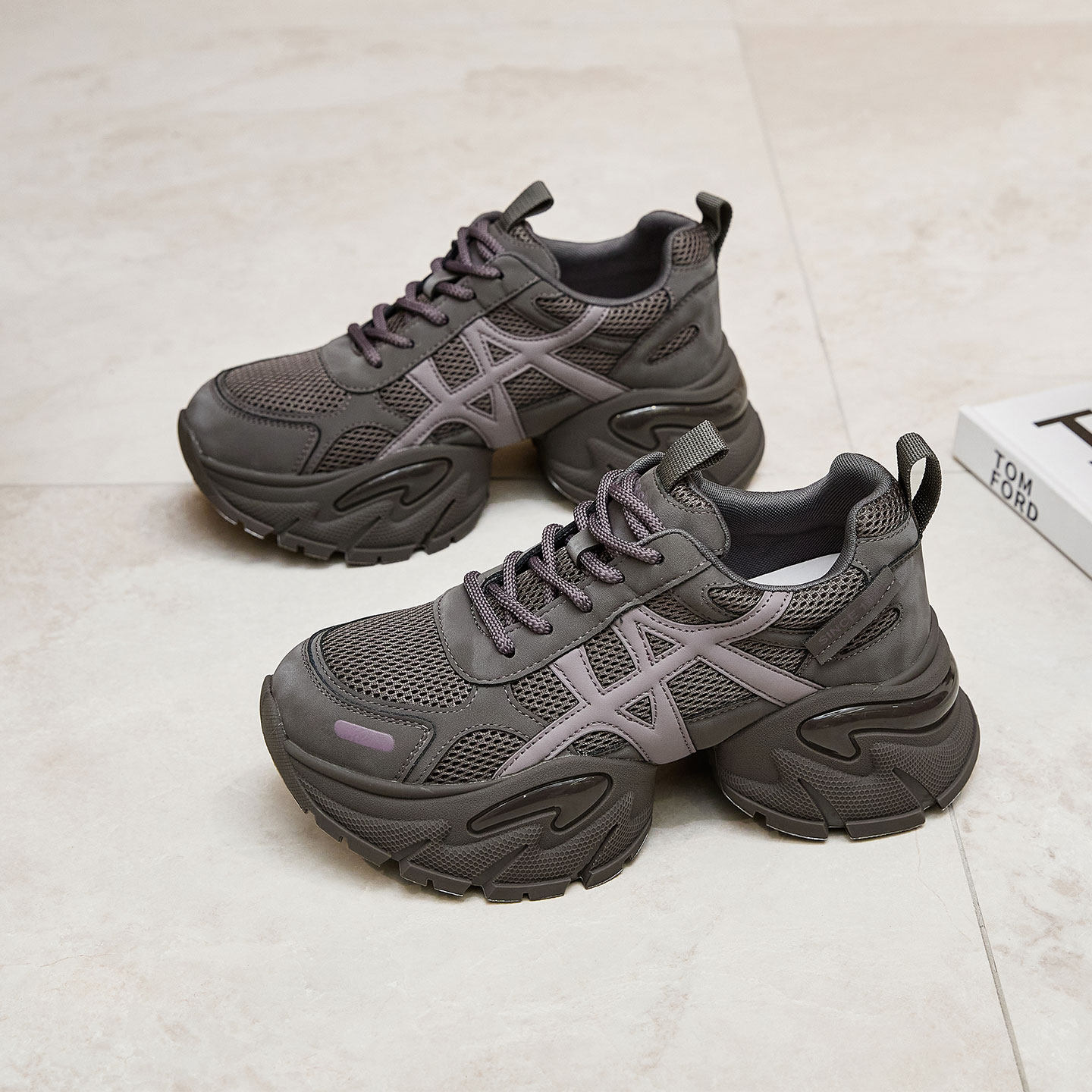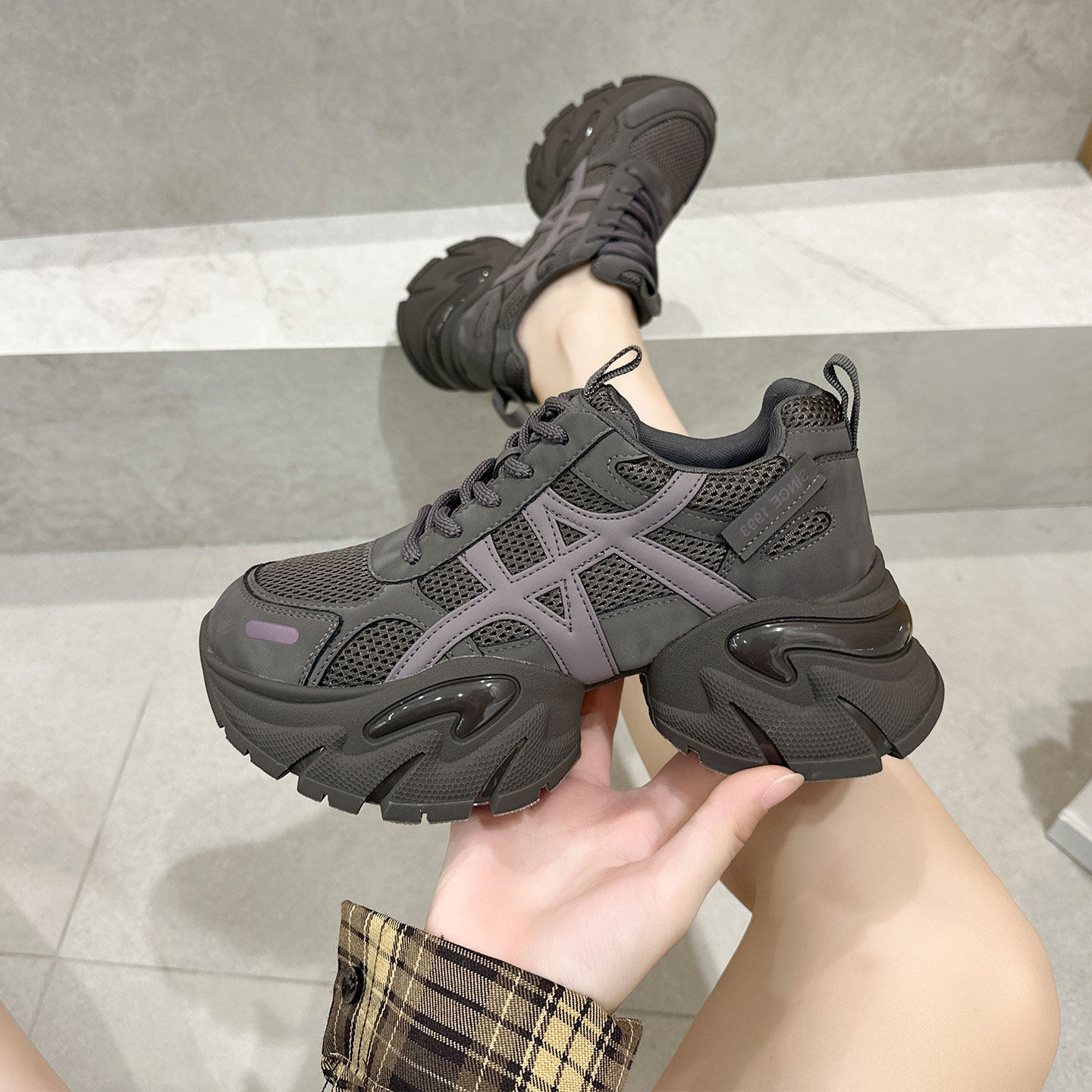 老爹鞋女款2025新款秋冬季真皮厚底增高显脚小轻便运动休闲鞋子女