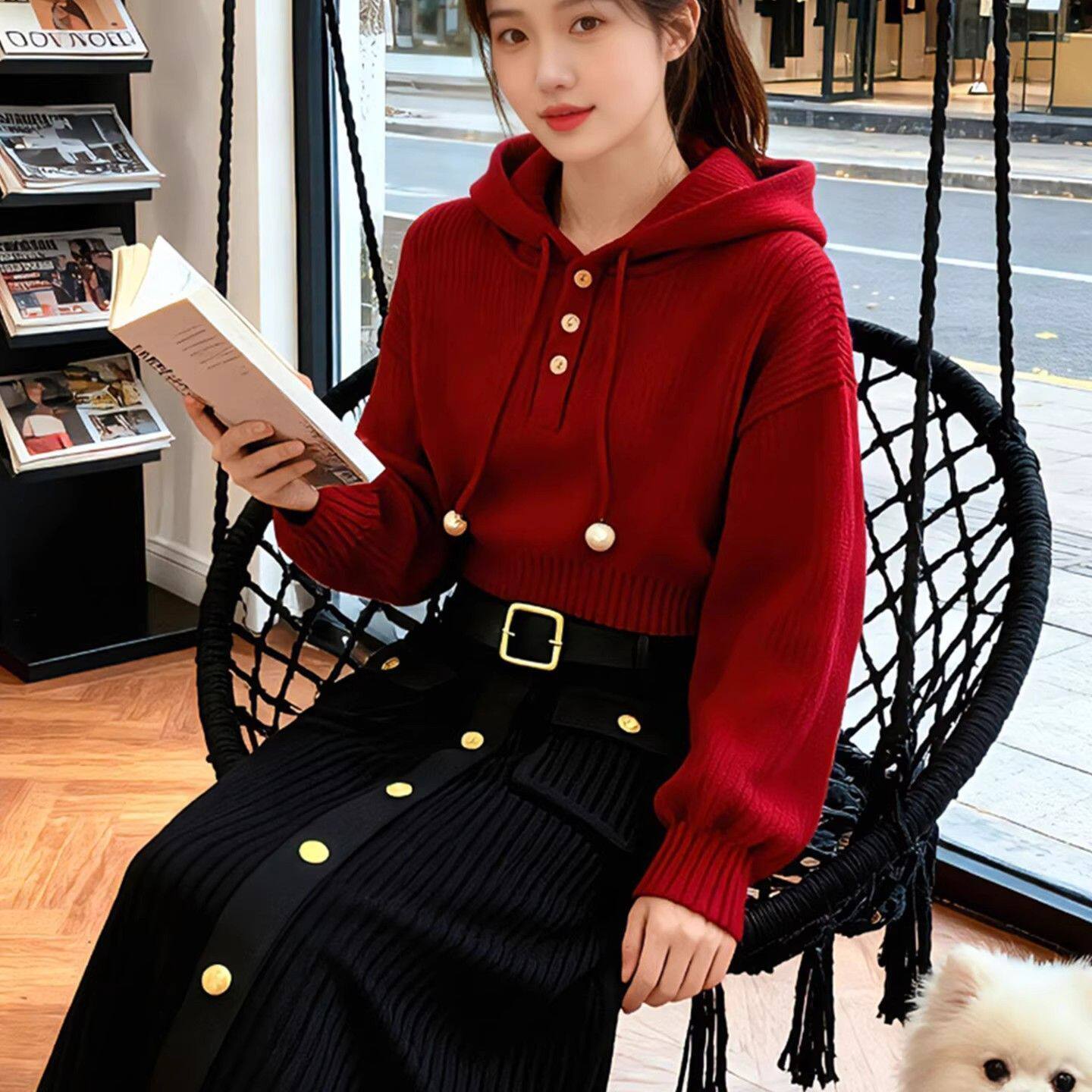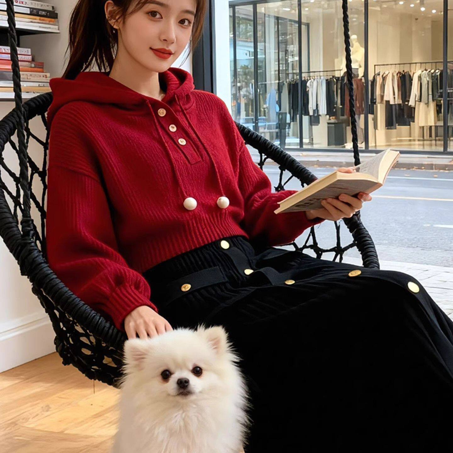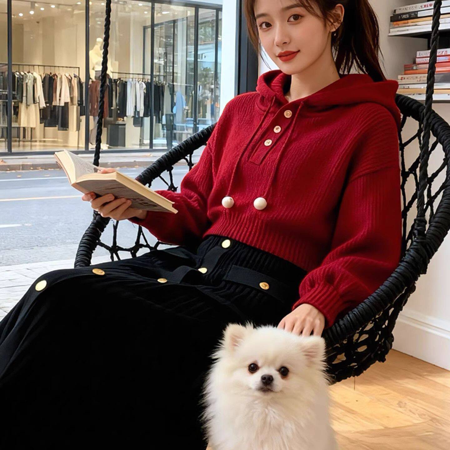 东莞大朗毛衣不起球新款正品连帽打底针织衫秋冬短款小个子外套女