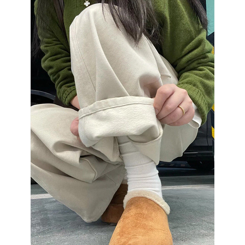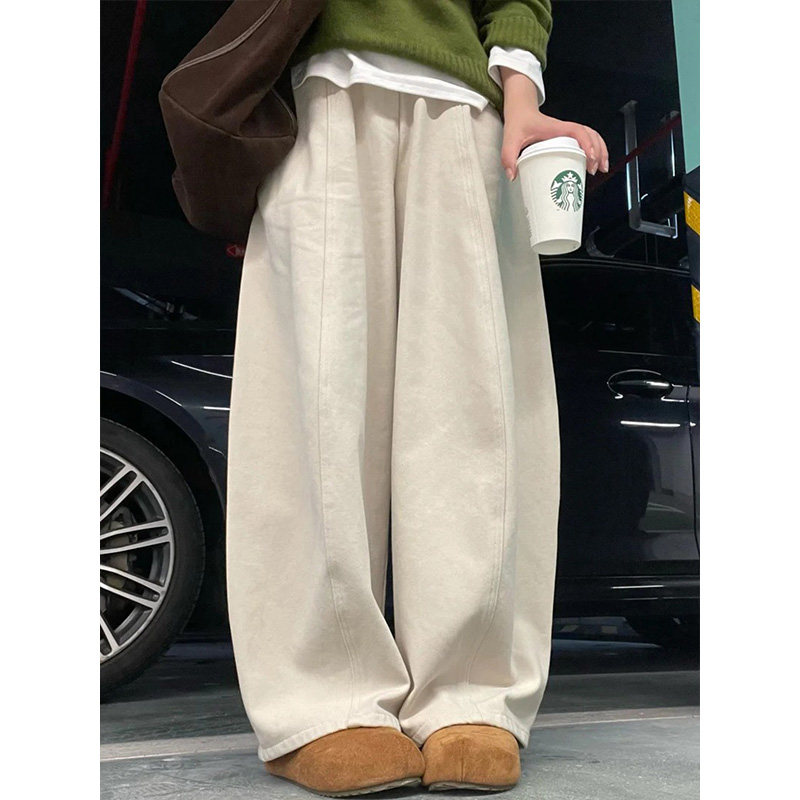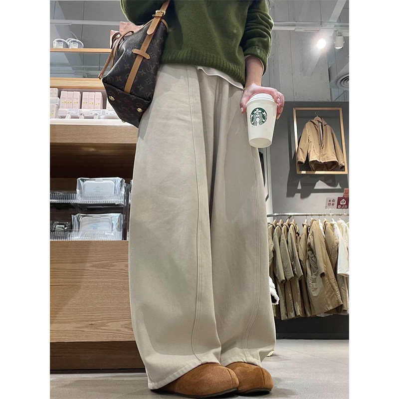 米杏色阔腿裤秋冬女2026早春新款大码胖mm宽松慵懒风显瘦韩系裤子