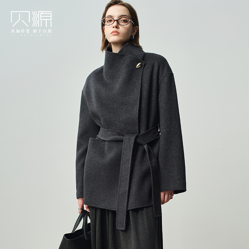 贝源2025新款白色双面羊绒大衣女慵懒风小个子中长款羊毛毛呢外套