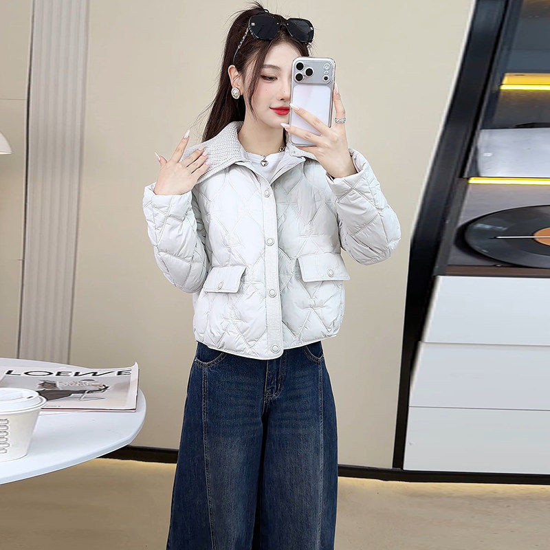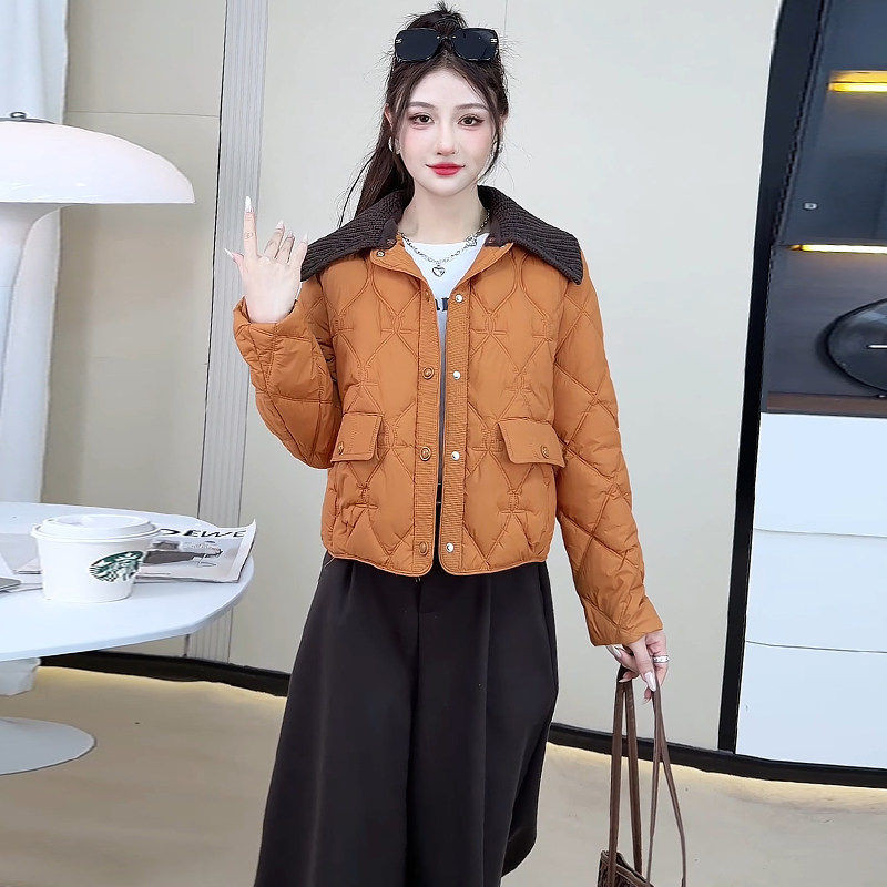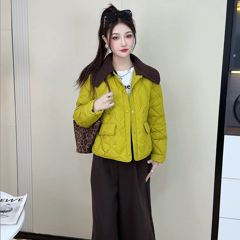 小香风撞色减龄棉服女2026冬季新款洋气针织翻领棉衣保暖棉袄外套