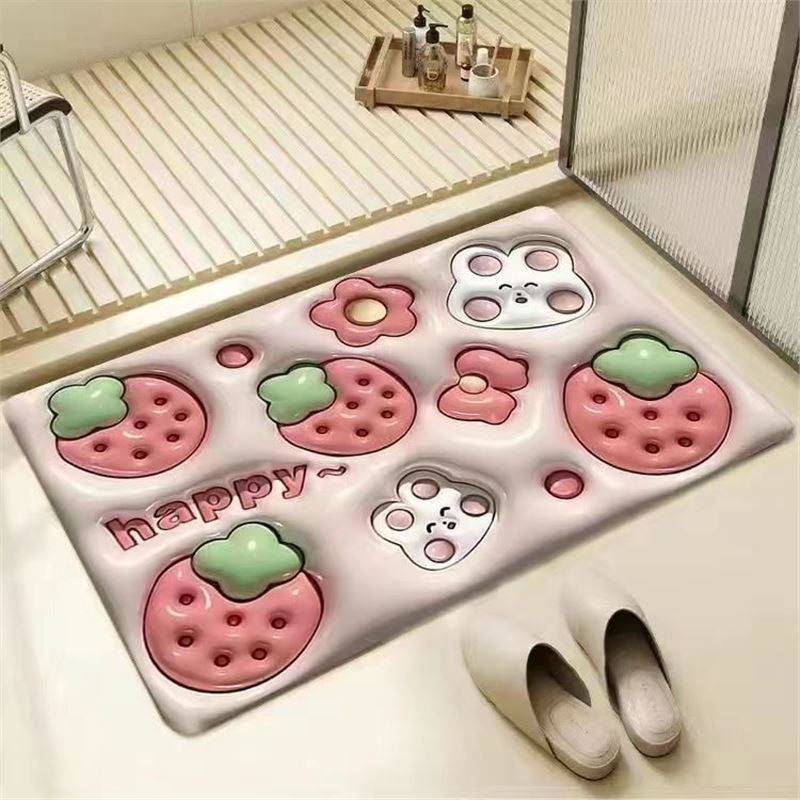 Y膨胀小花硅藻泥地垫防滑吸裸眼浴室3D立体视觉浴室厕所进门ins