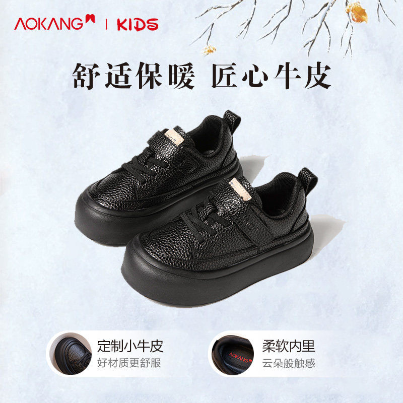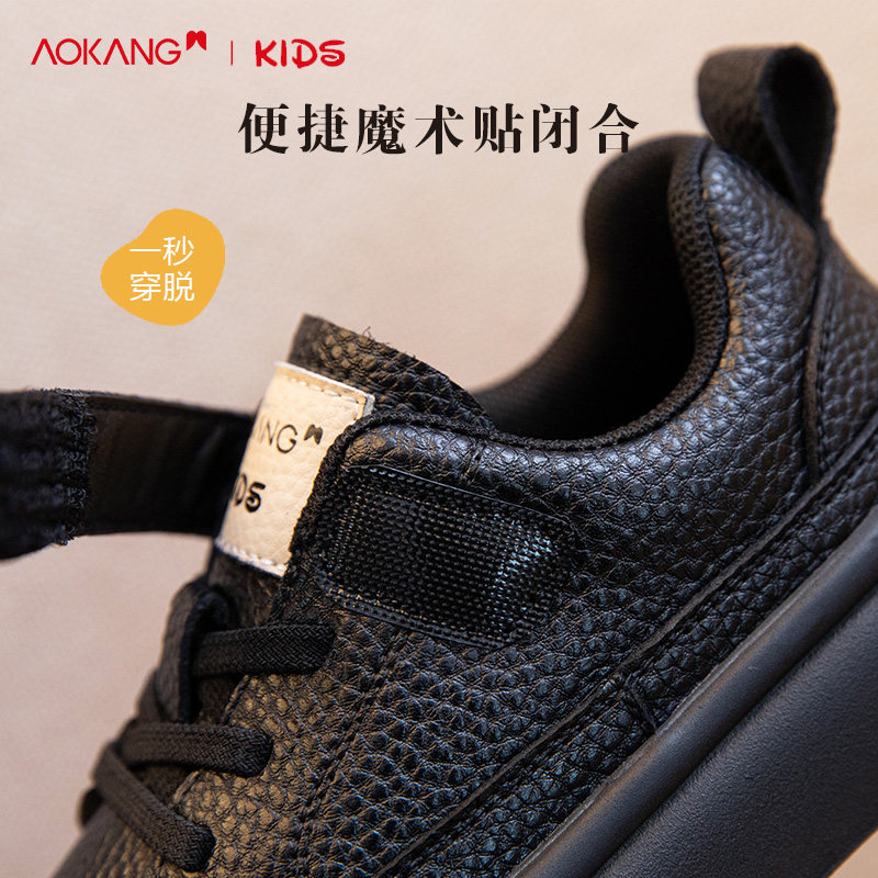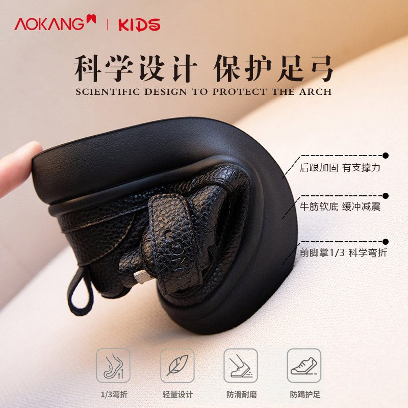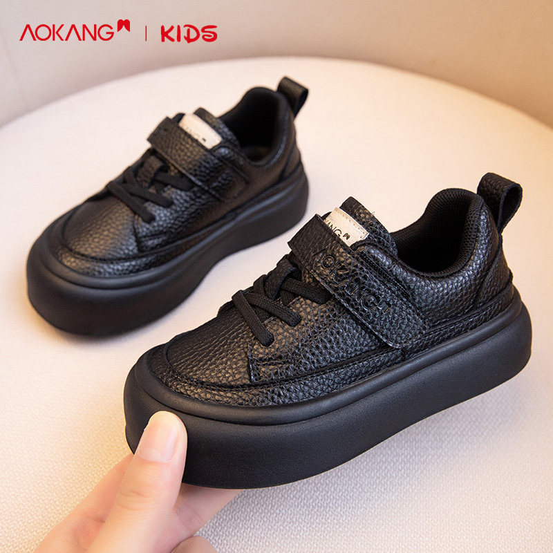 奥康女童板鞋2026春季新款儿童软底运动鞋透气黑色单鞋男童皮鞋冬