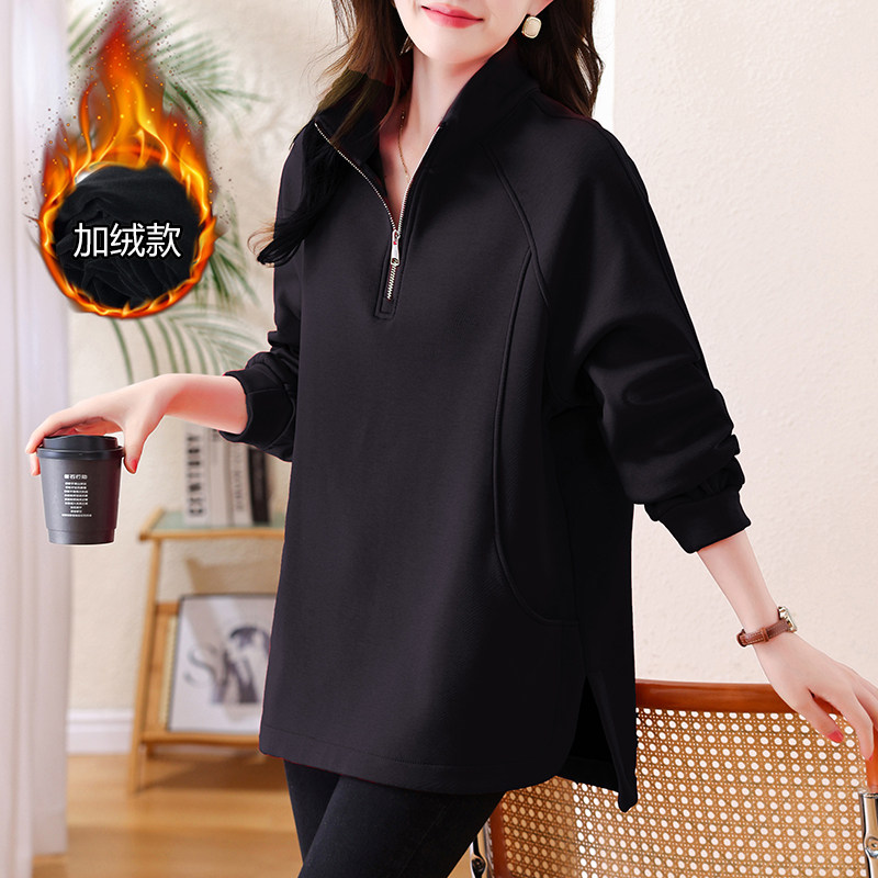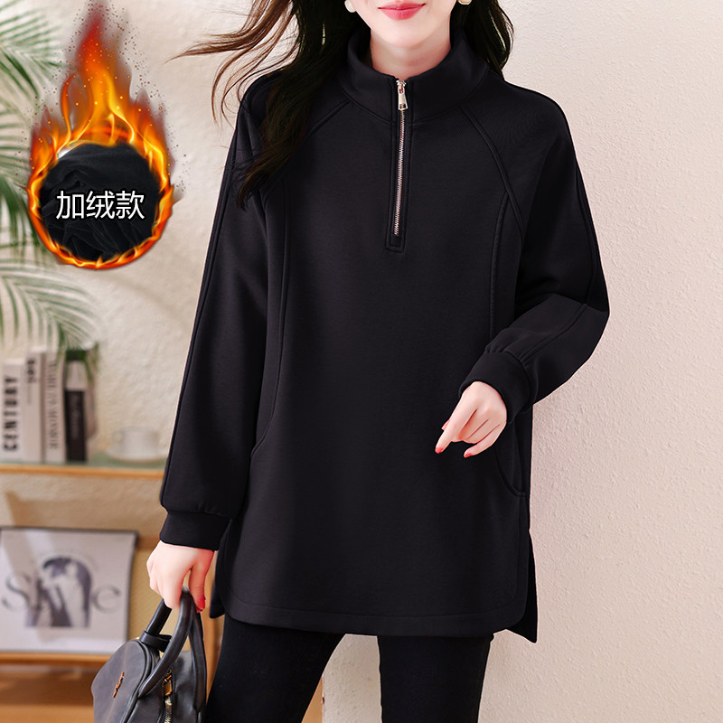 中长款加绒即墨卫衣女款2026新款爆款大码胖mm遮屁股时尚洋气上衣