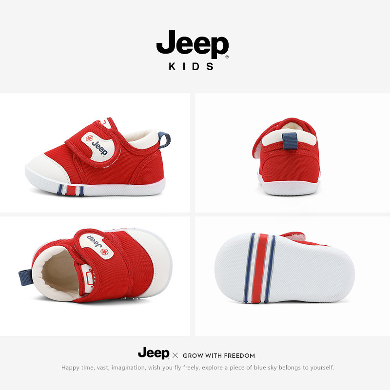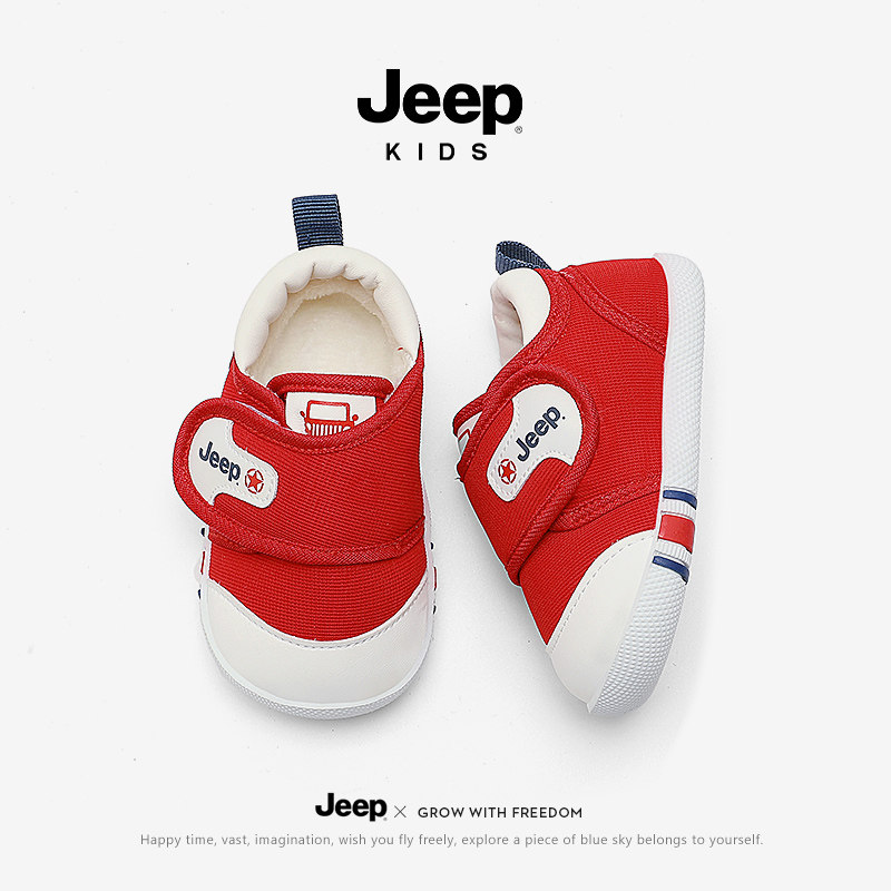 Jeep儿童鞋轻便防崴魔术贴学步鞋女童宝宝鞋男童冬季加绒运动鞋子