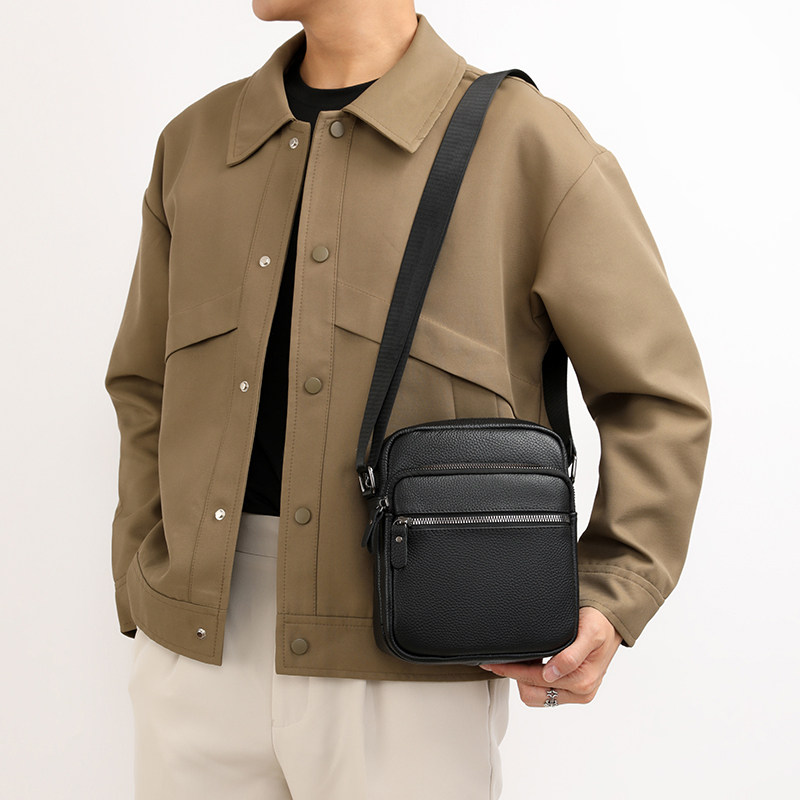 头层牛皮包商务休闲男士斜挎包包真皮高级背包男款手机单肩小挎包