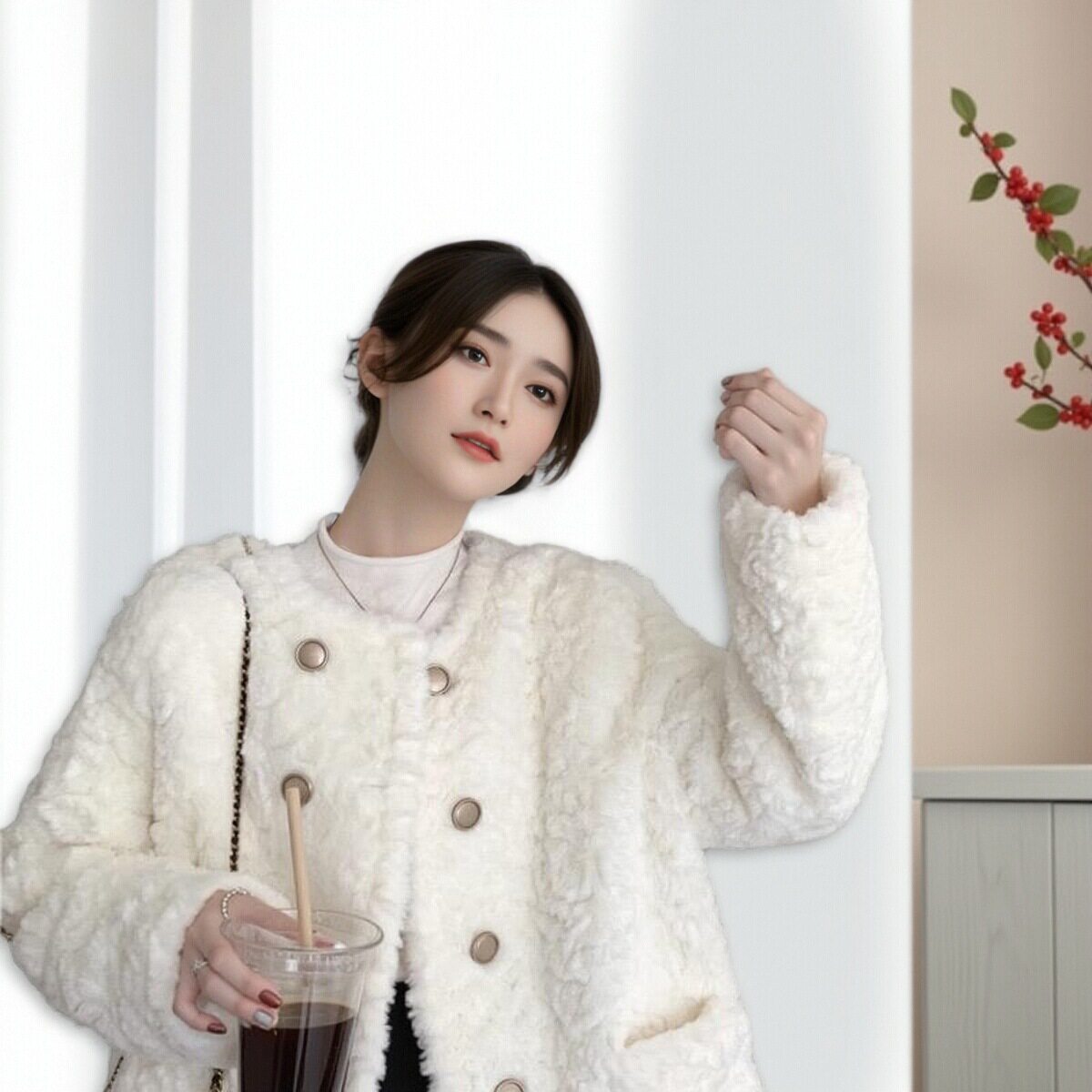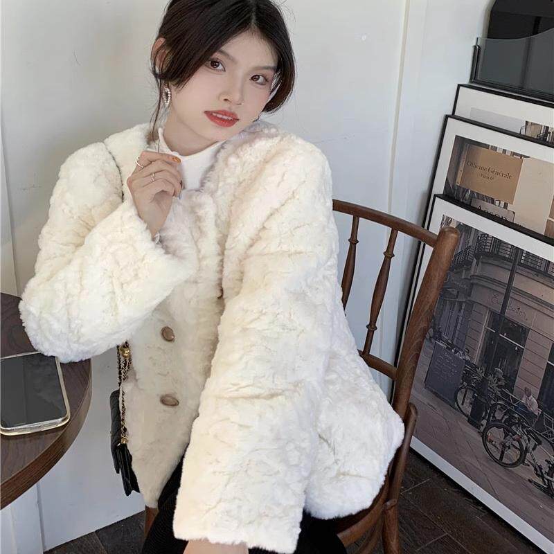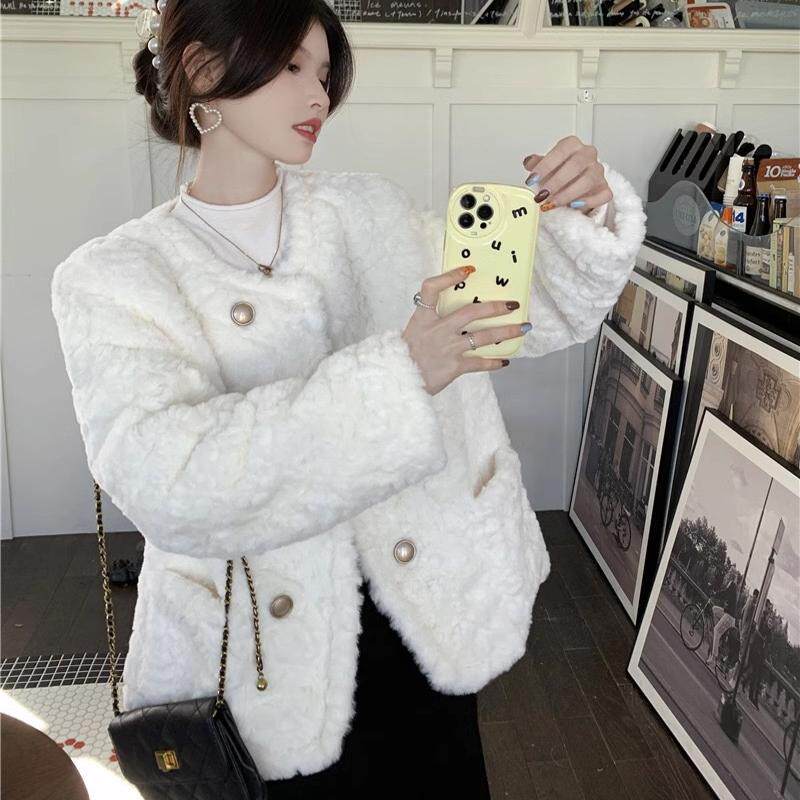 羊羔毛加厚保暖外套2024冬季新款獭兔毛时尚年轻款皮草女潮小香风